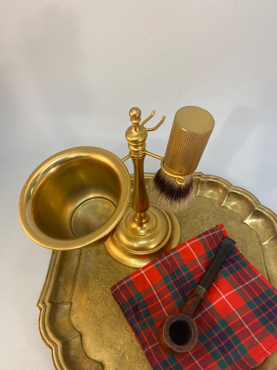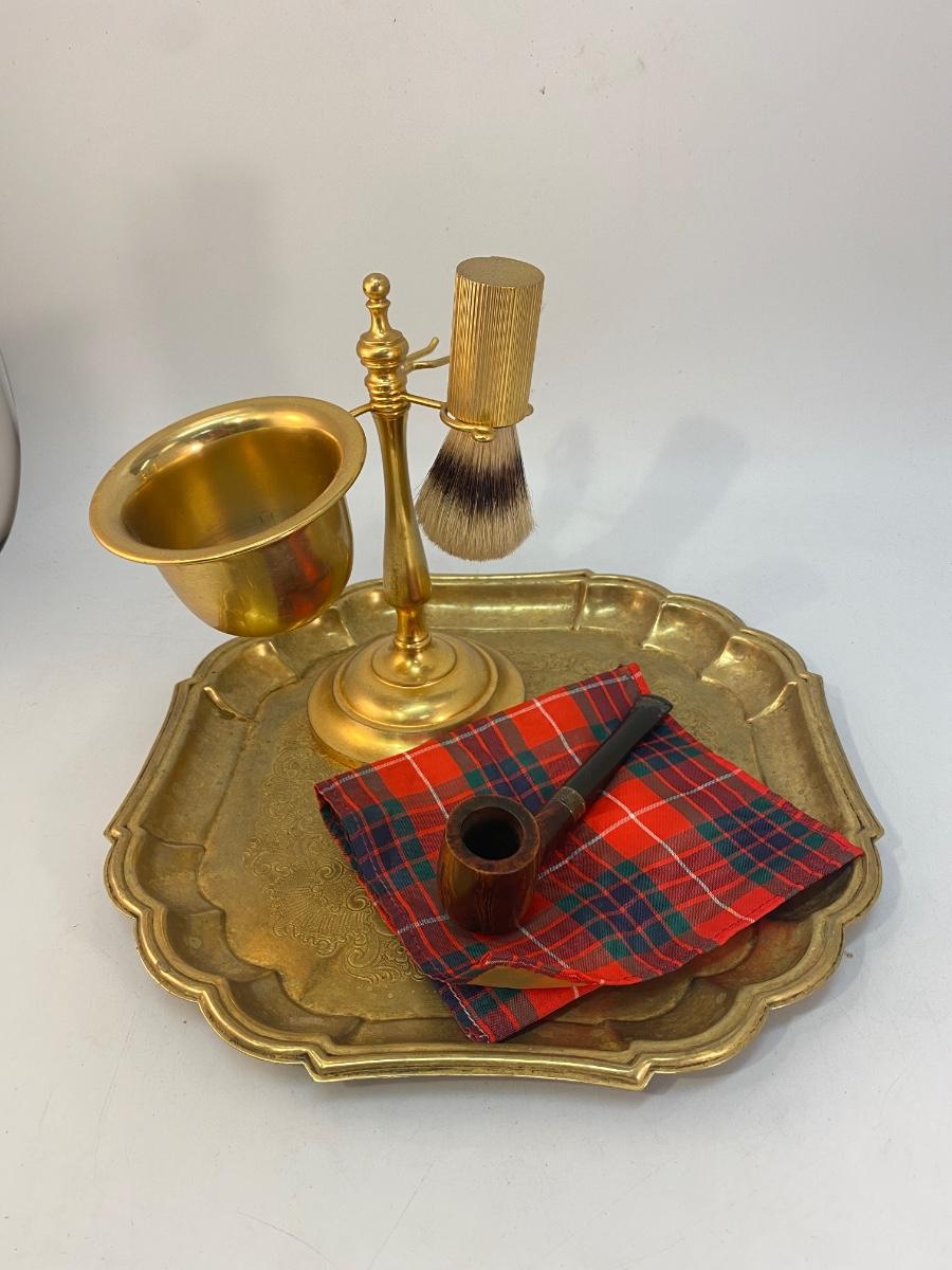 Brass Gentlemen's Shaving Set Smoking Pipe & Tray Set