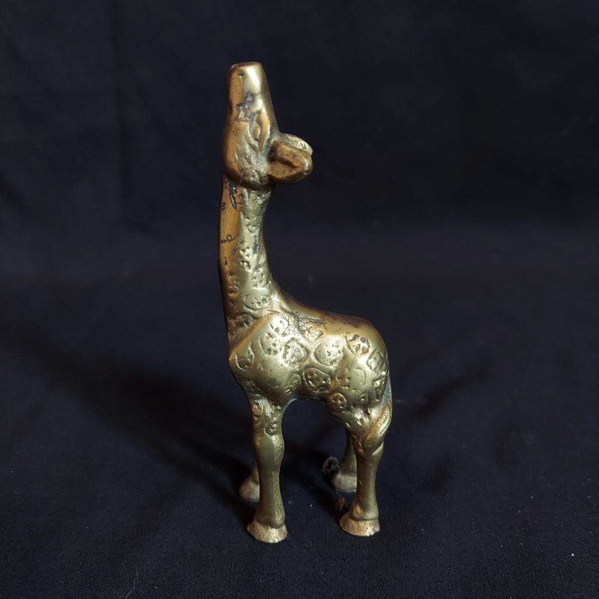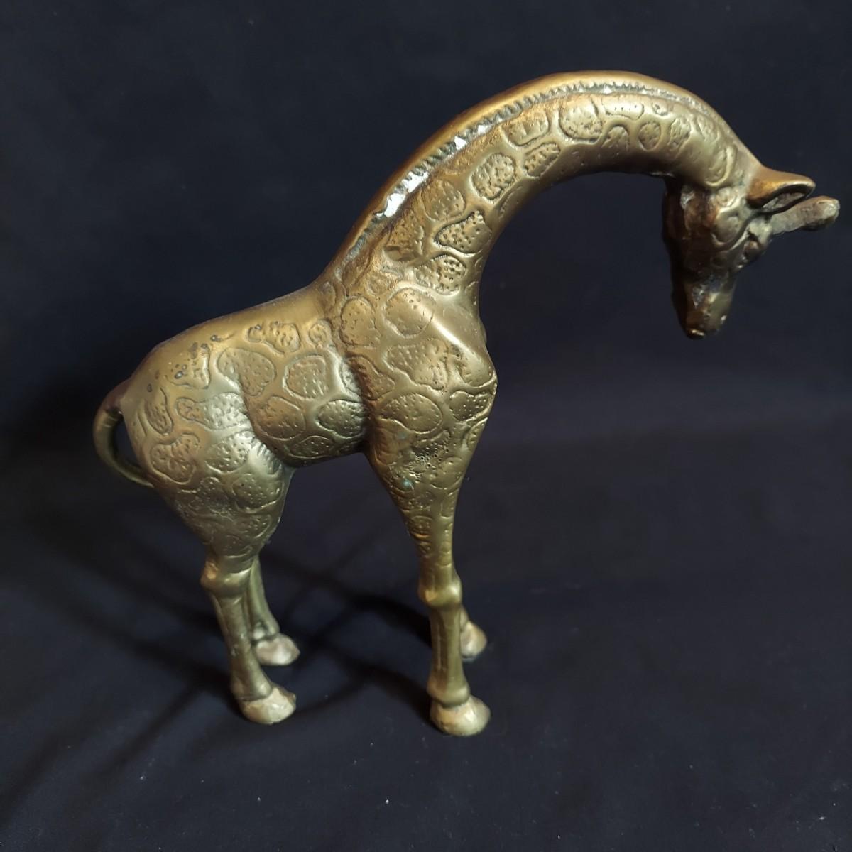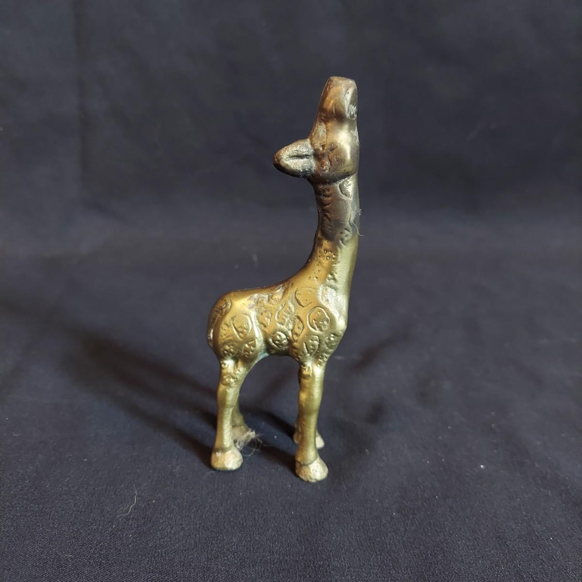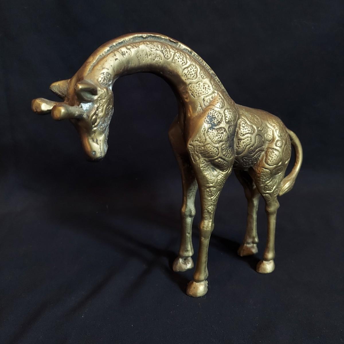 Two unmarked brass giraffe figures. The large one is 8.5" tall and the small one is 5" tall. There is also a brass Boxer dog that is 4.5" long and 4" tall. Shipping available. Shipping certain items can be costly. We suggest contacting our preferred local shipping provider, Postage Express, with dimensions and getting an estimate before bidding: (828) 670-5501 or postageexpress@yahoo.com.