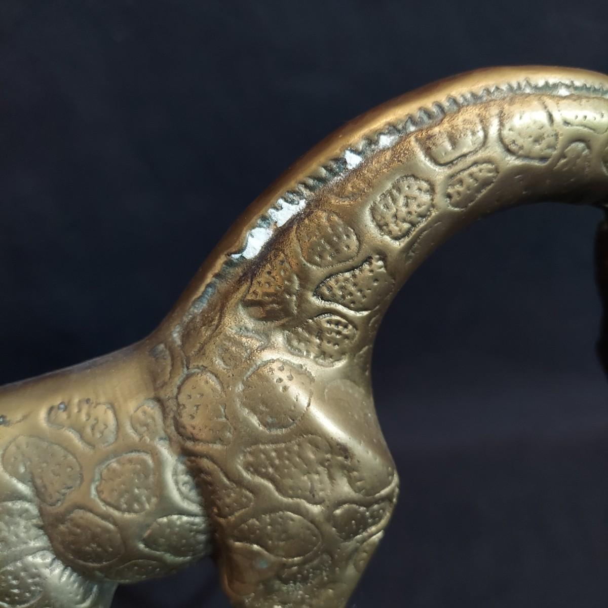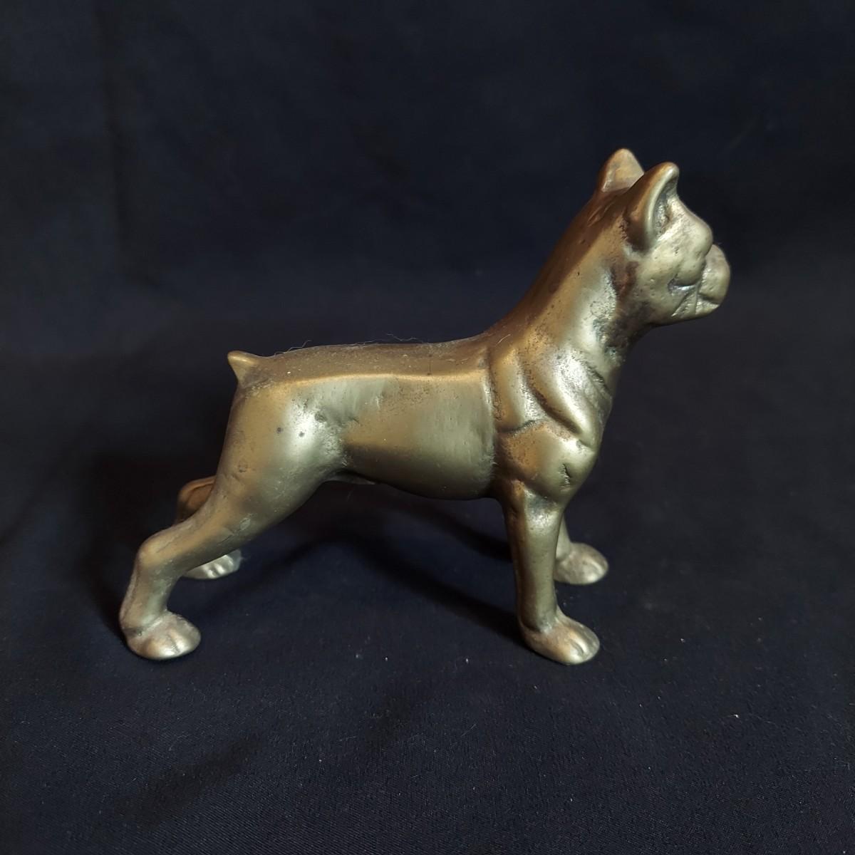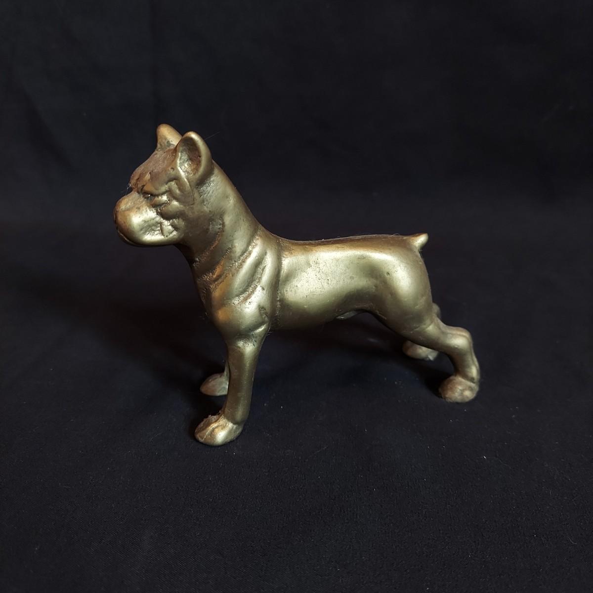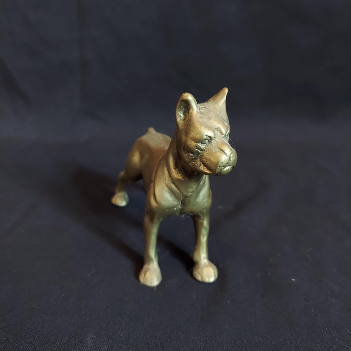 Two unmarked brass giraffe figures. The large one is 8.5" tall and the small one is 5" tall. There is also a brass Boxer dog that is 4.5" long and 4" tall. Shipping available. Shipping certain items can be costly. We suggest contacting our preferred local shipping provider, Postage Express, with dimensions and getting an estimate before bidding: (828) 670-5501 or postageexpress@yahoo.com.