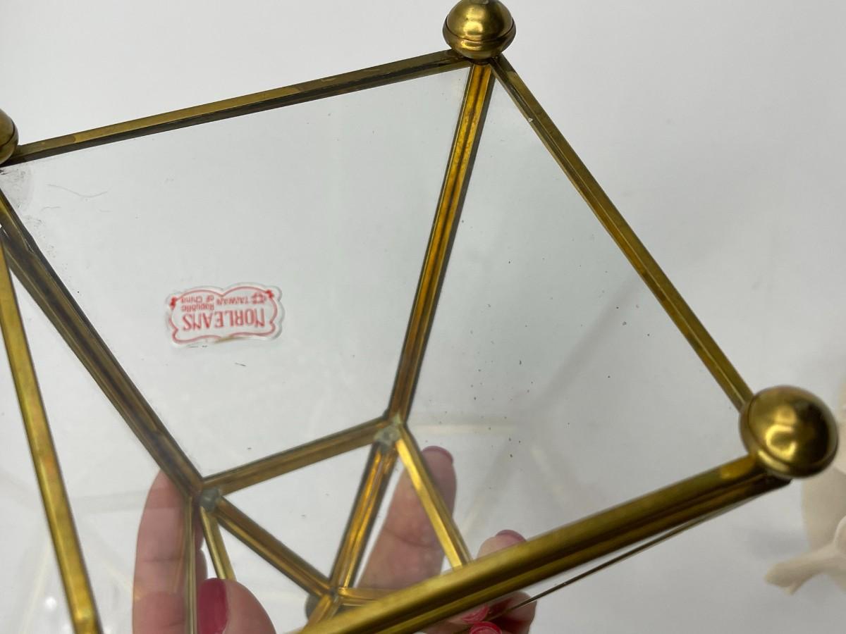Brass & Glass Display Box with Small Porcelain Trinket Inside