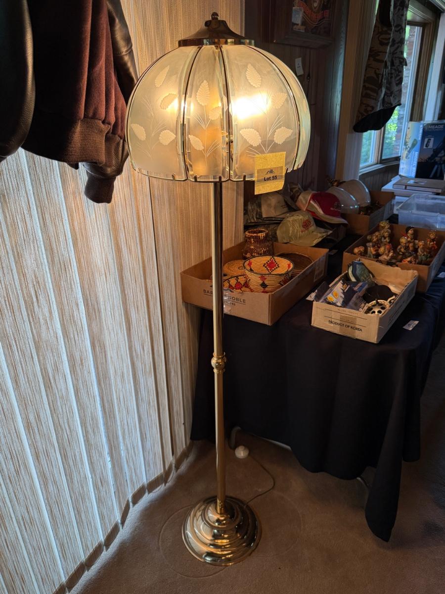 Working brass & glass floor lamp w/several bulbs & floor switch