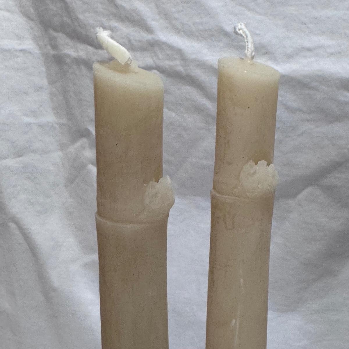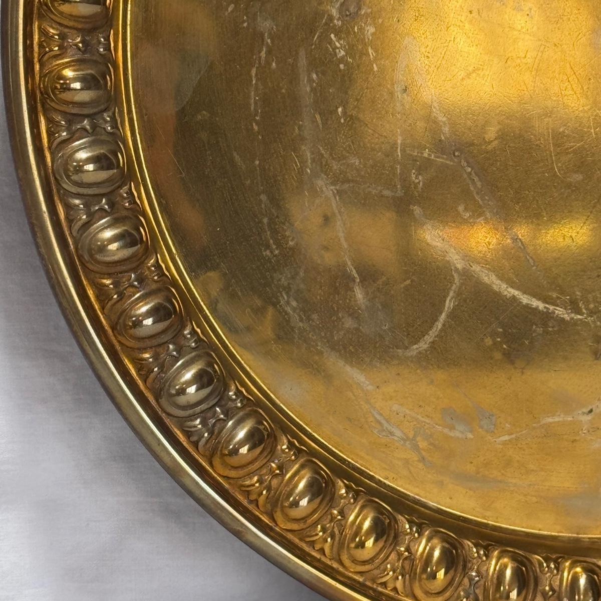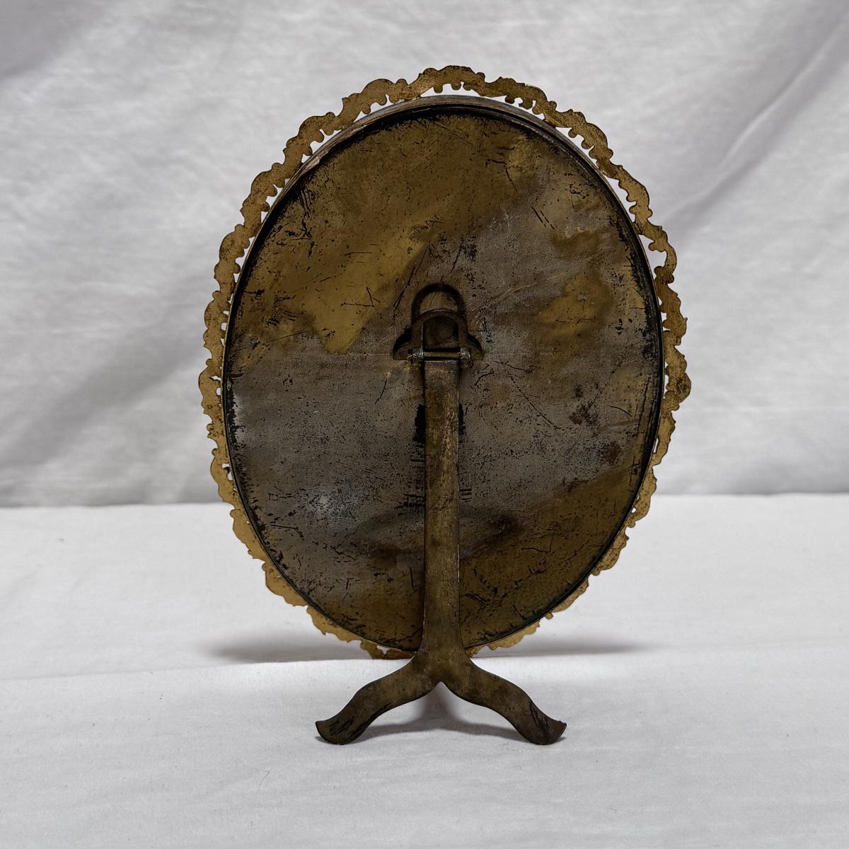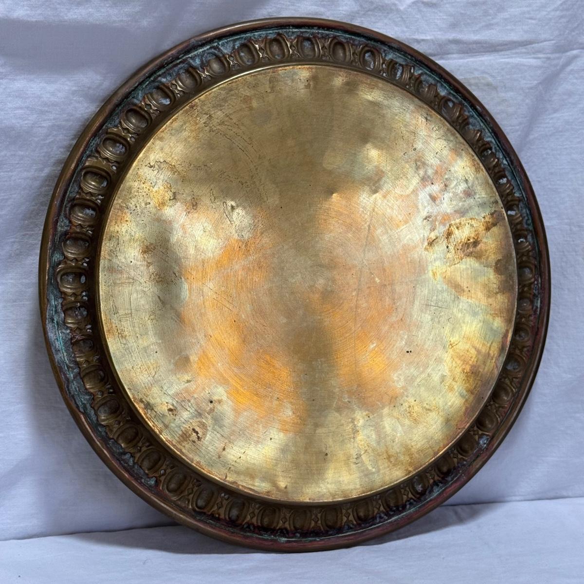 This lot includes two brass twisted candlesticks, one brass serving tray, one brass picture frame, and six variously colored tapered candles. See pictures for details. The dish measures 12”D x 1”H. Shipping available.