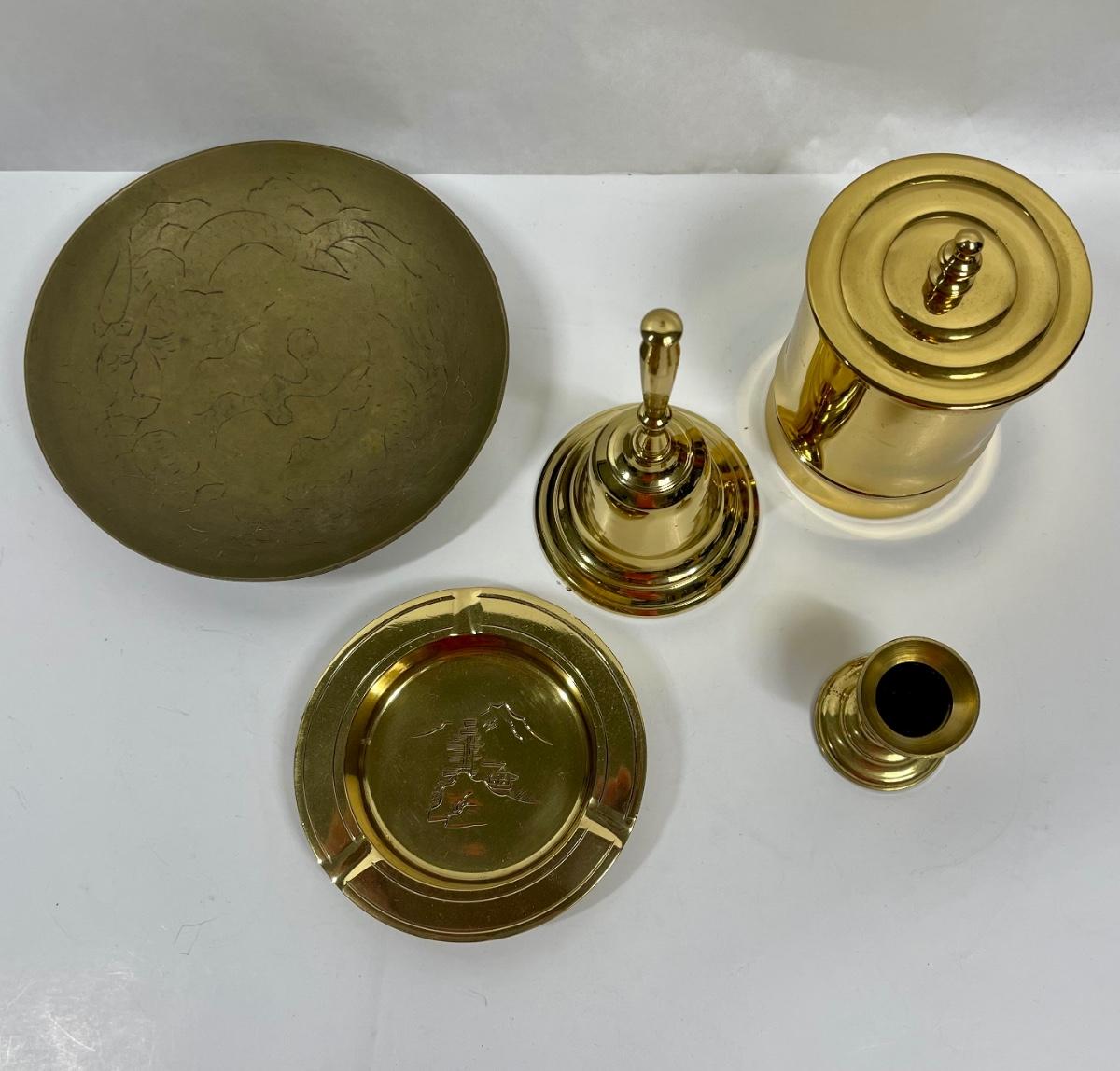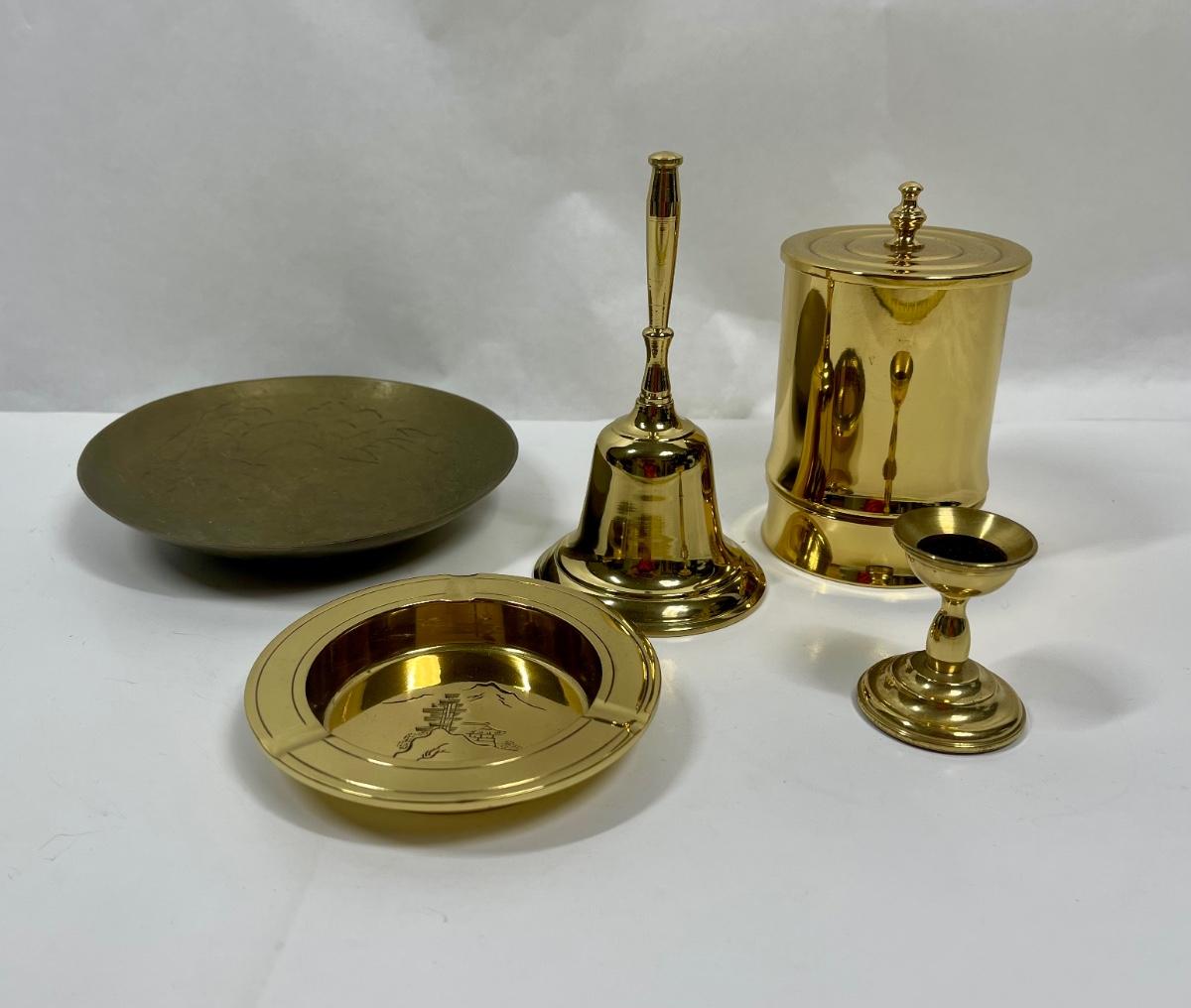 Items include ashtray, candle holder, and hand bell, all in good condition