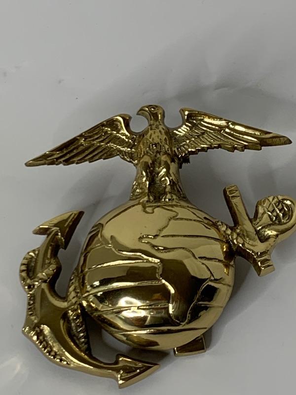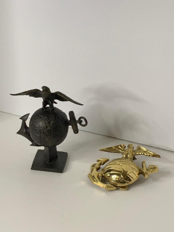USMC Brass Door Knocker and Heavy Metal US Marine Corps Pin Eagle Globe Anchor Desk Sculpture