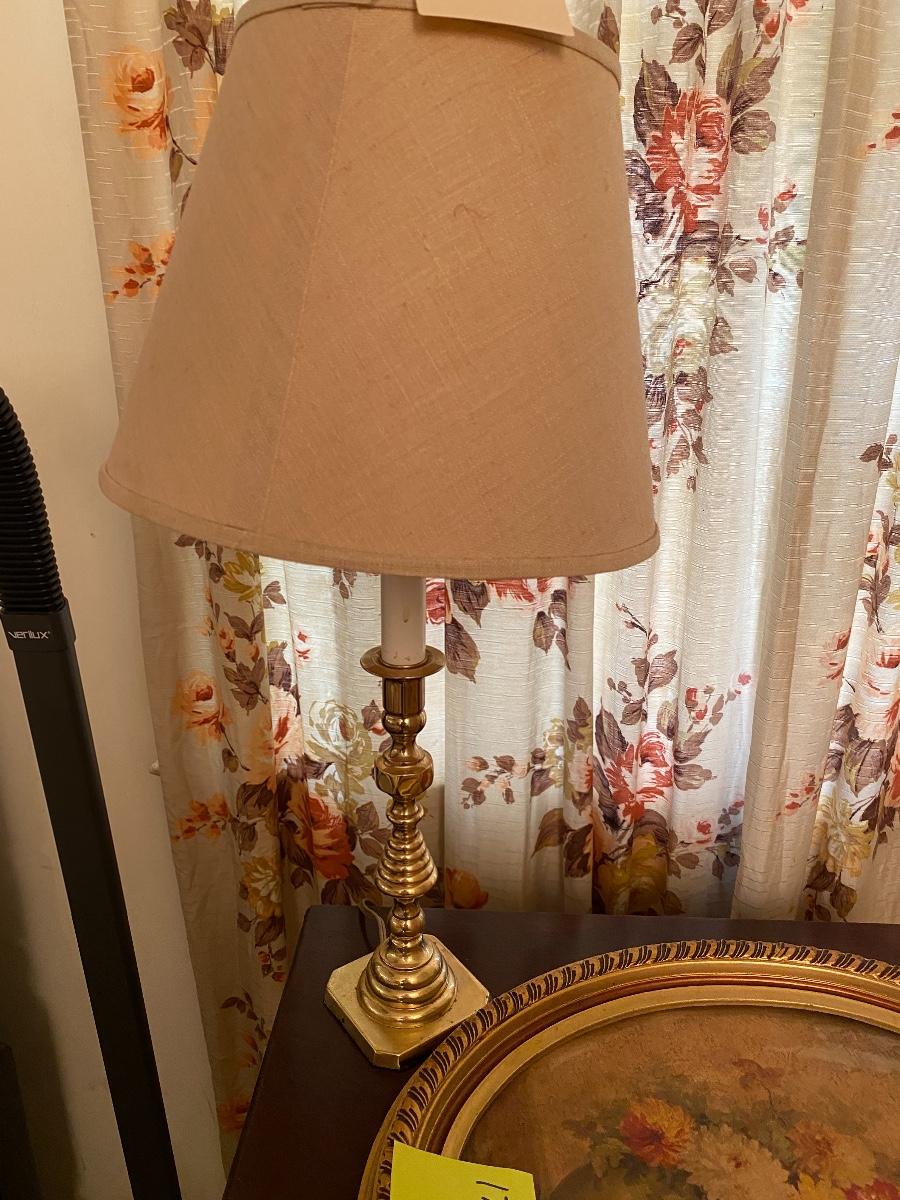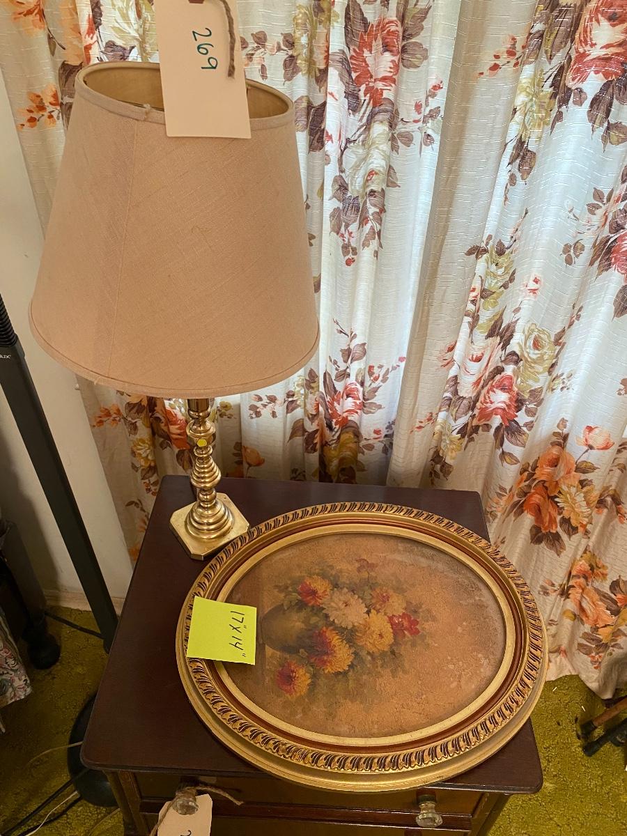 LOT 269 Brass Lamp and Oval Picture Lot As Pictured