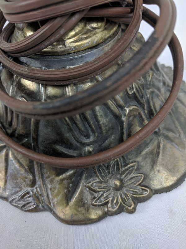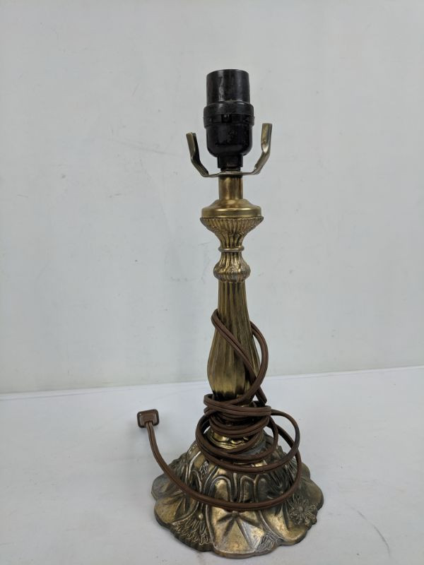 Brass Lamp W/ Flower Designs 14" - Tested Works