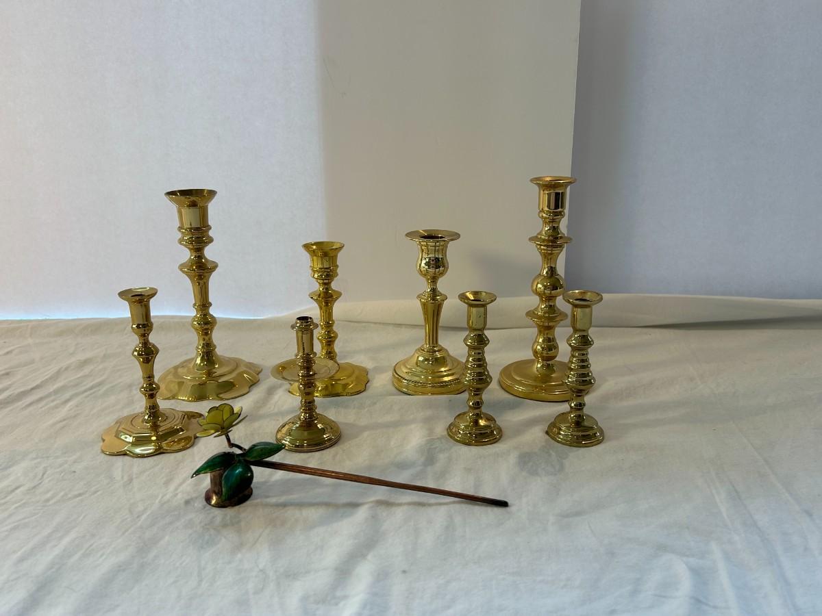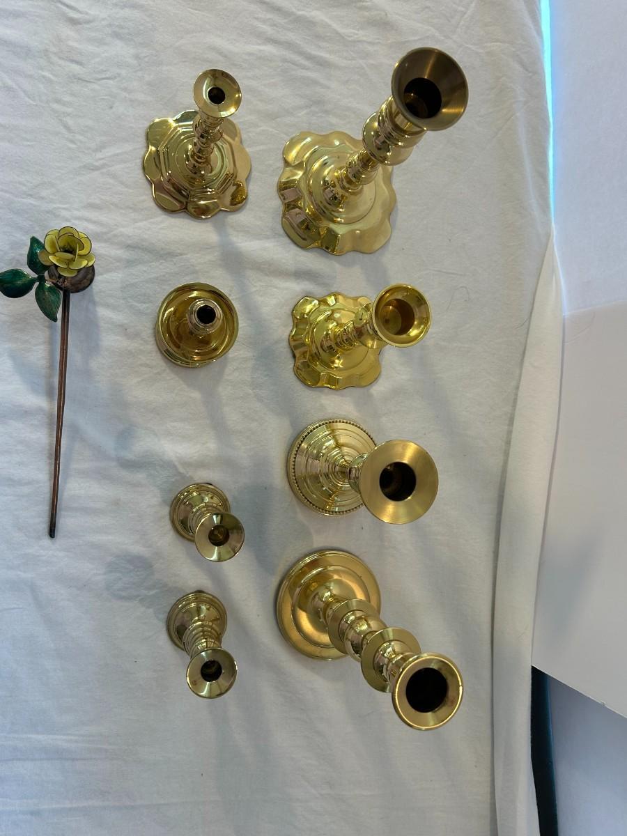 I hope you're not brassed out because there's more to see! Candlesticks and a cute yellow rose candle snuffer.
