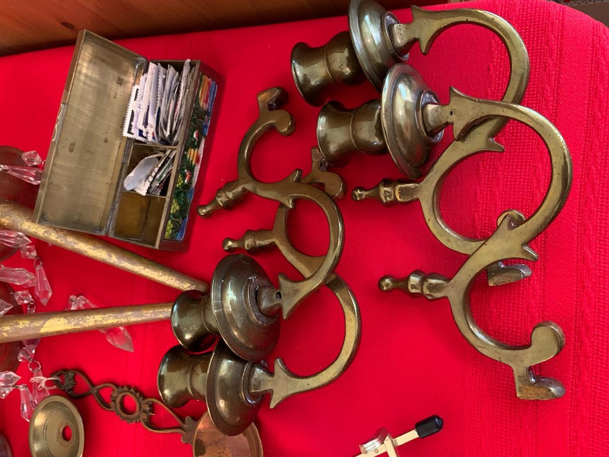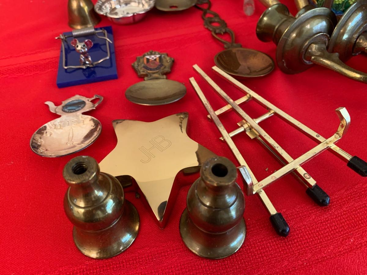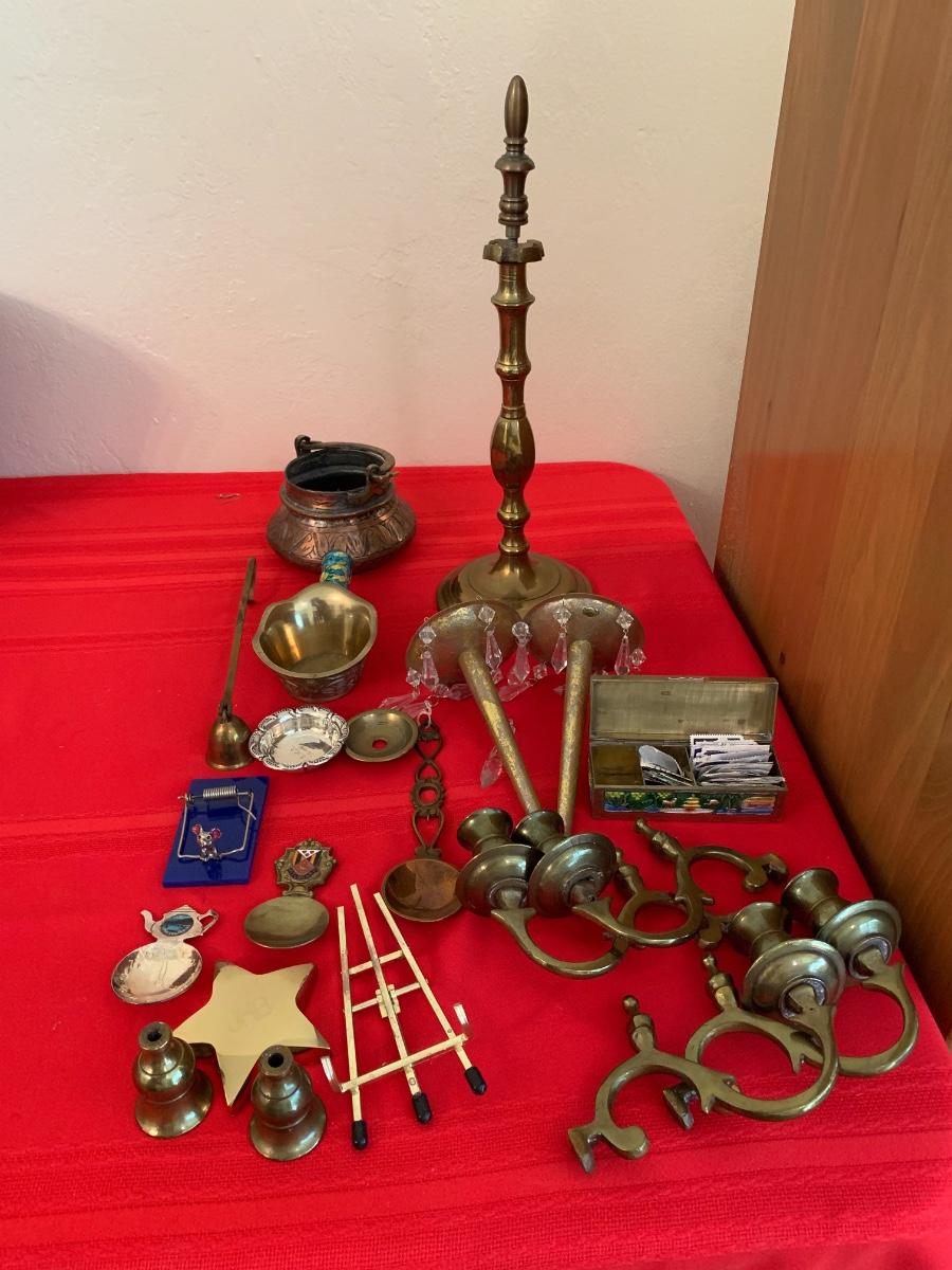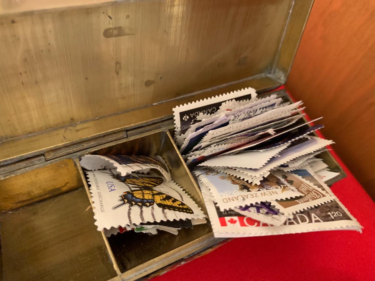 Various Collection of Brass Items. Including a collection of stamps (mostly Canadian).
