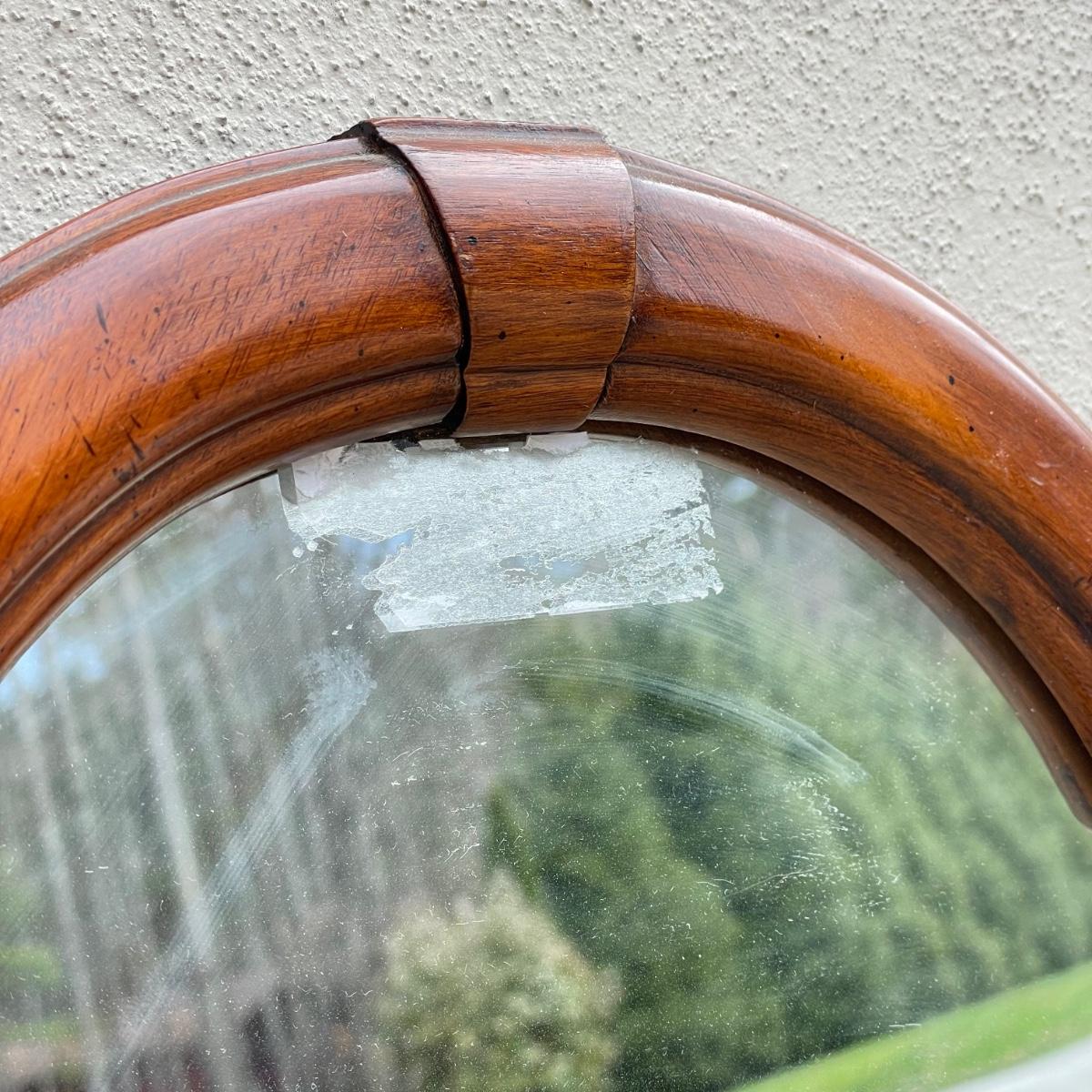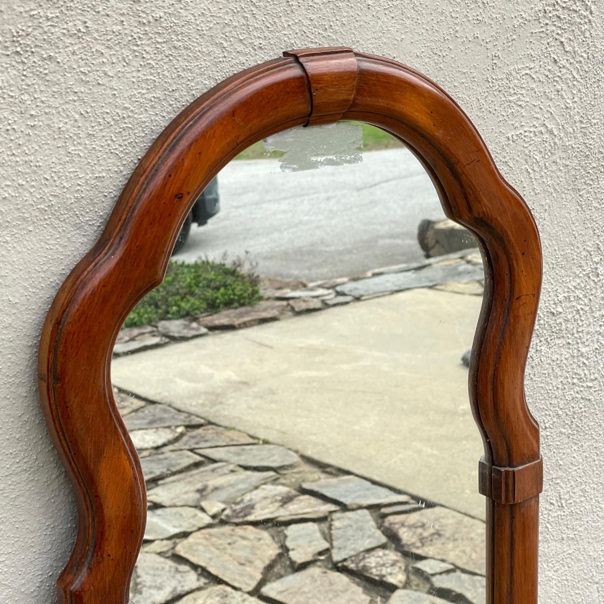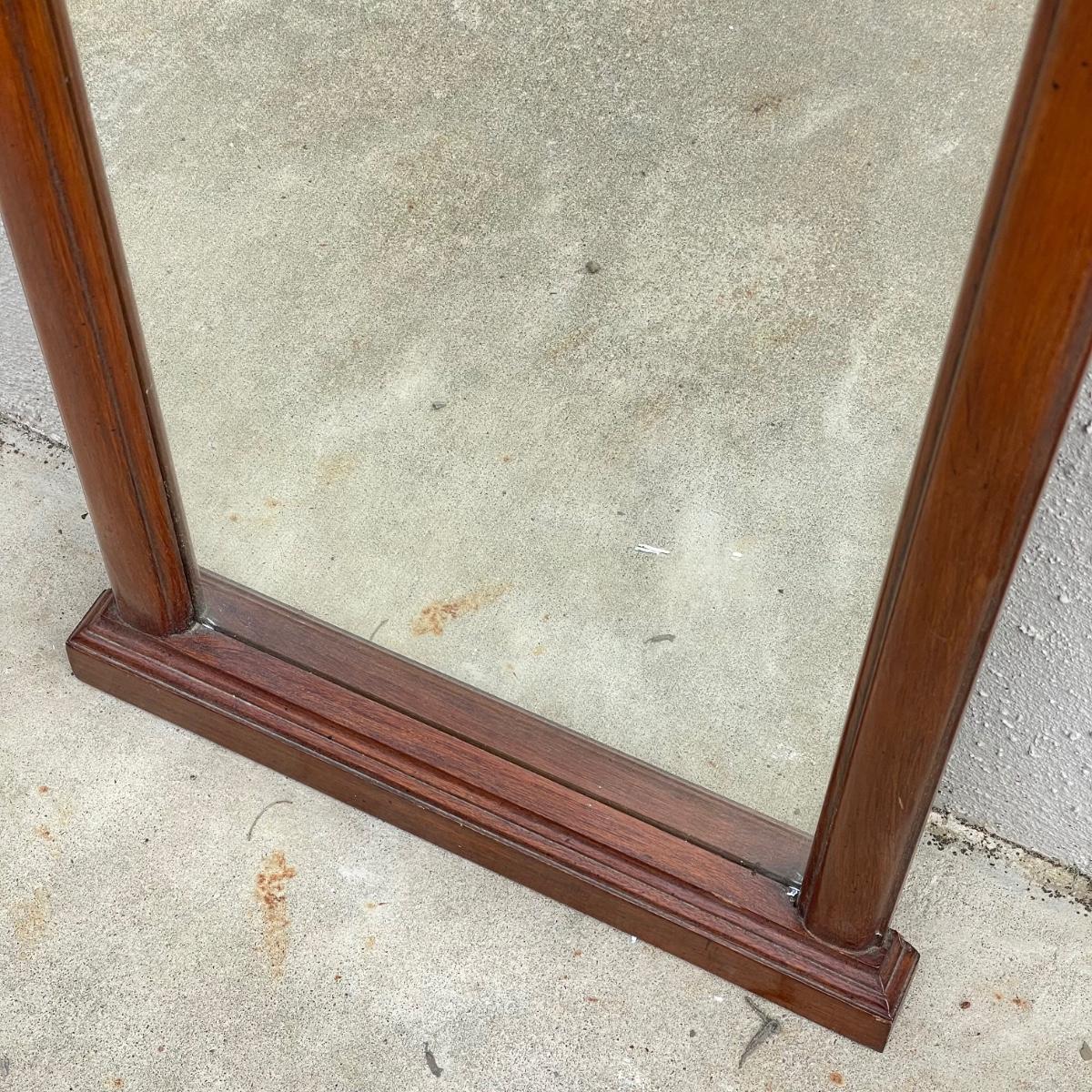Wooden framed almost full-length mirror measures 14.5” x 42”. It has a strip of adhesive near the top of the mirror. Lot also includes an electric brass lamp with a scalloped milk glass shade. Lamp measures approximately 8” x 16.25”. The shade sits loosely on the brass lamp. See images. Shipping available. Please call UPS with dimensions at 828-252-6930 for a shipping quote prior to bidding.