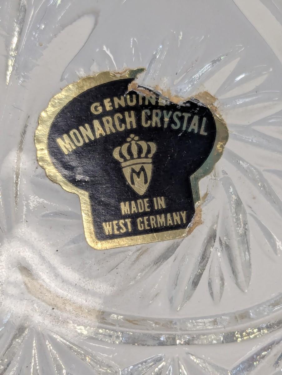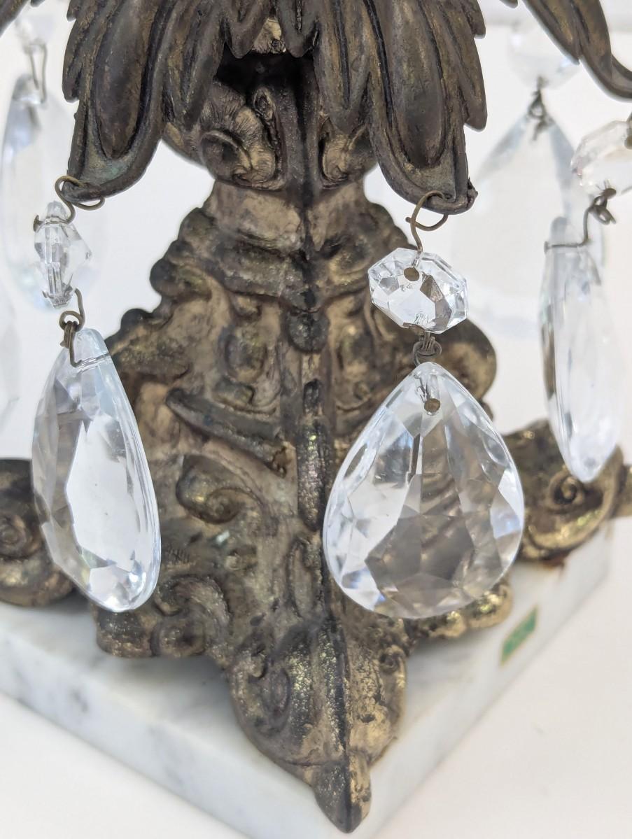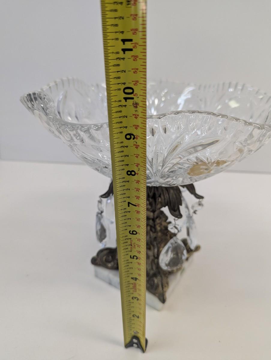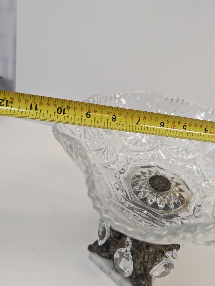 Brass Monarch Lead Crystal Pedestal Compote Bowl Drop Crystals With Marble Base