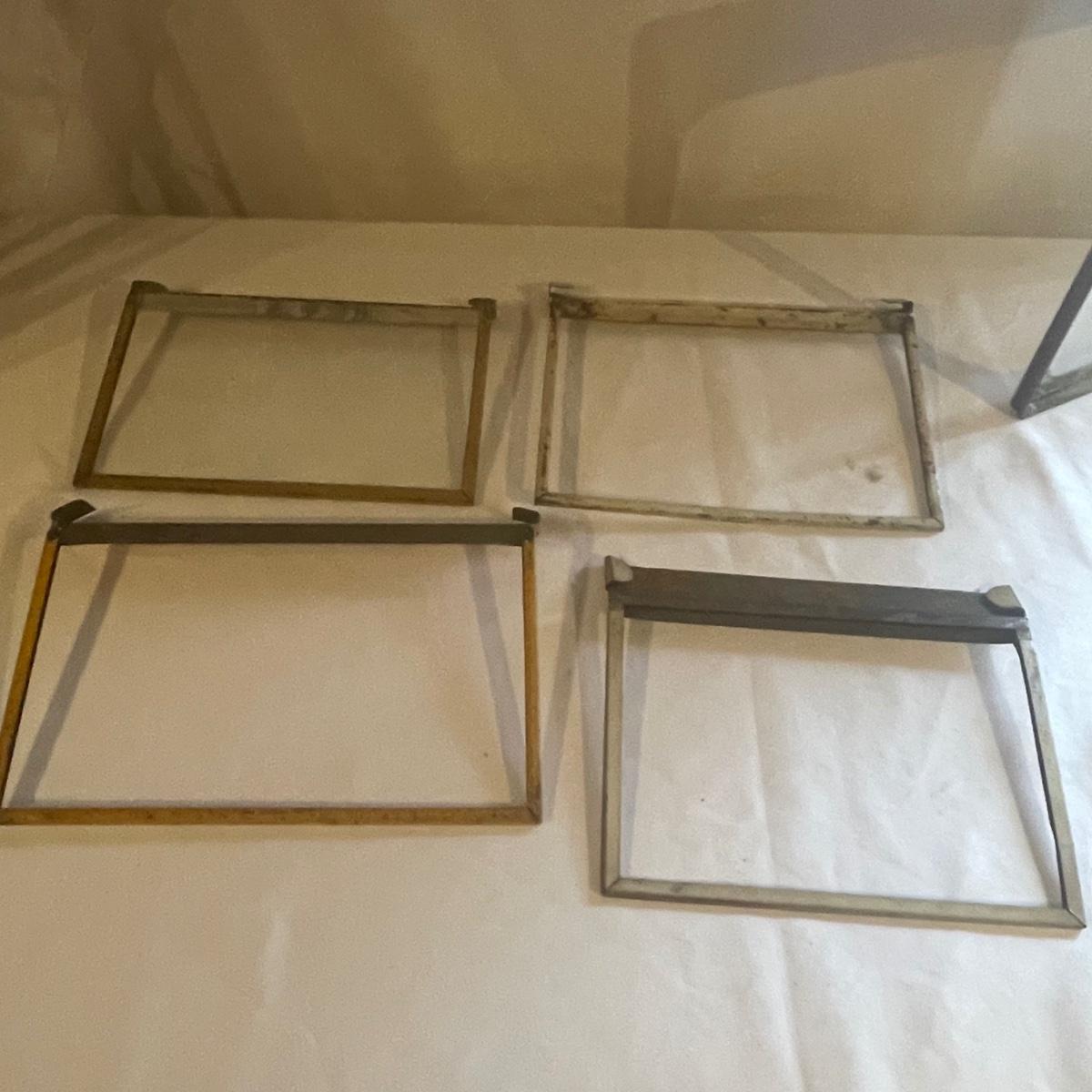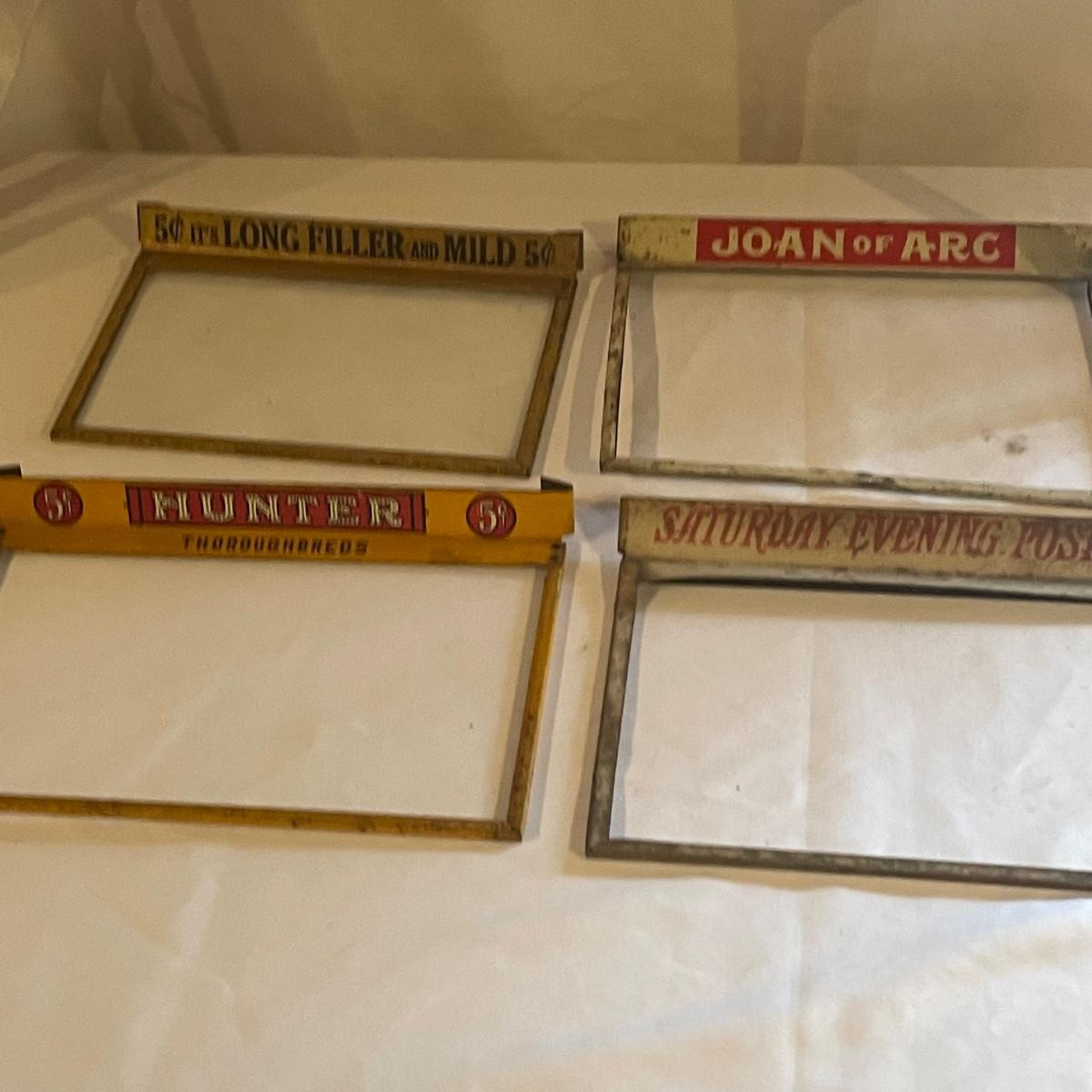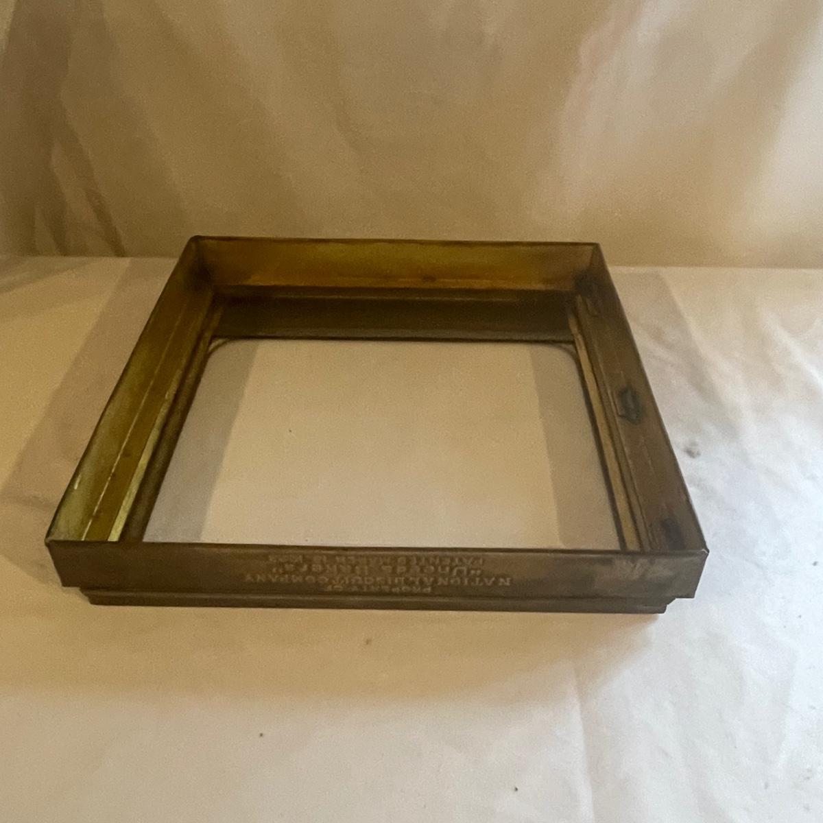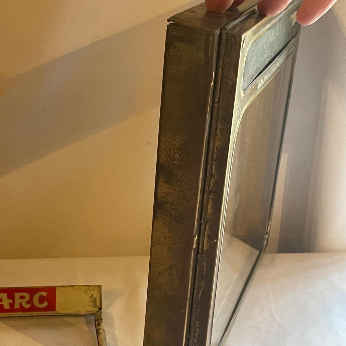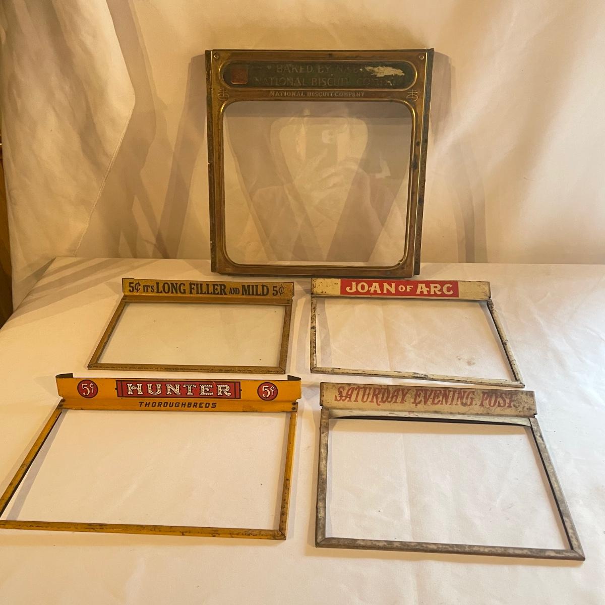 These four advertisement plaques are metal and are accompanied by a brass and glass door/cover from the National Biscuit Company that measures 10.5” square; it’s in good condition with just some minor oxidation of the metal.