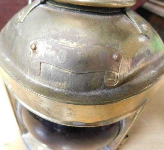 Brass Nautical Oil Lamp Port Side Red Glass Globe