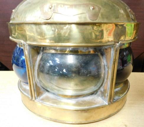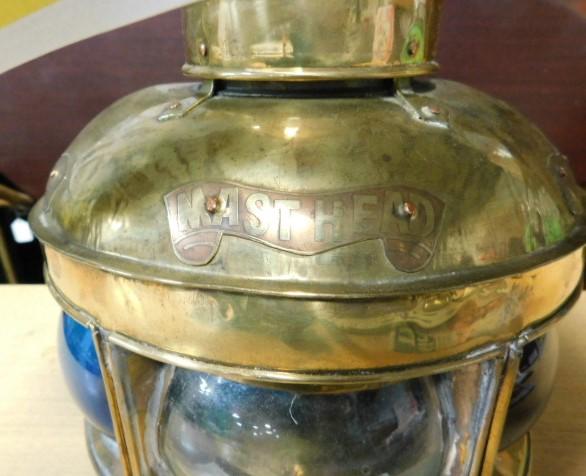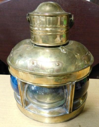 Brass Nautical Oil Lamp Port, Starboard, and Masthead Blue, Red, and Clear Glass Globe