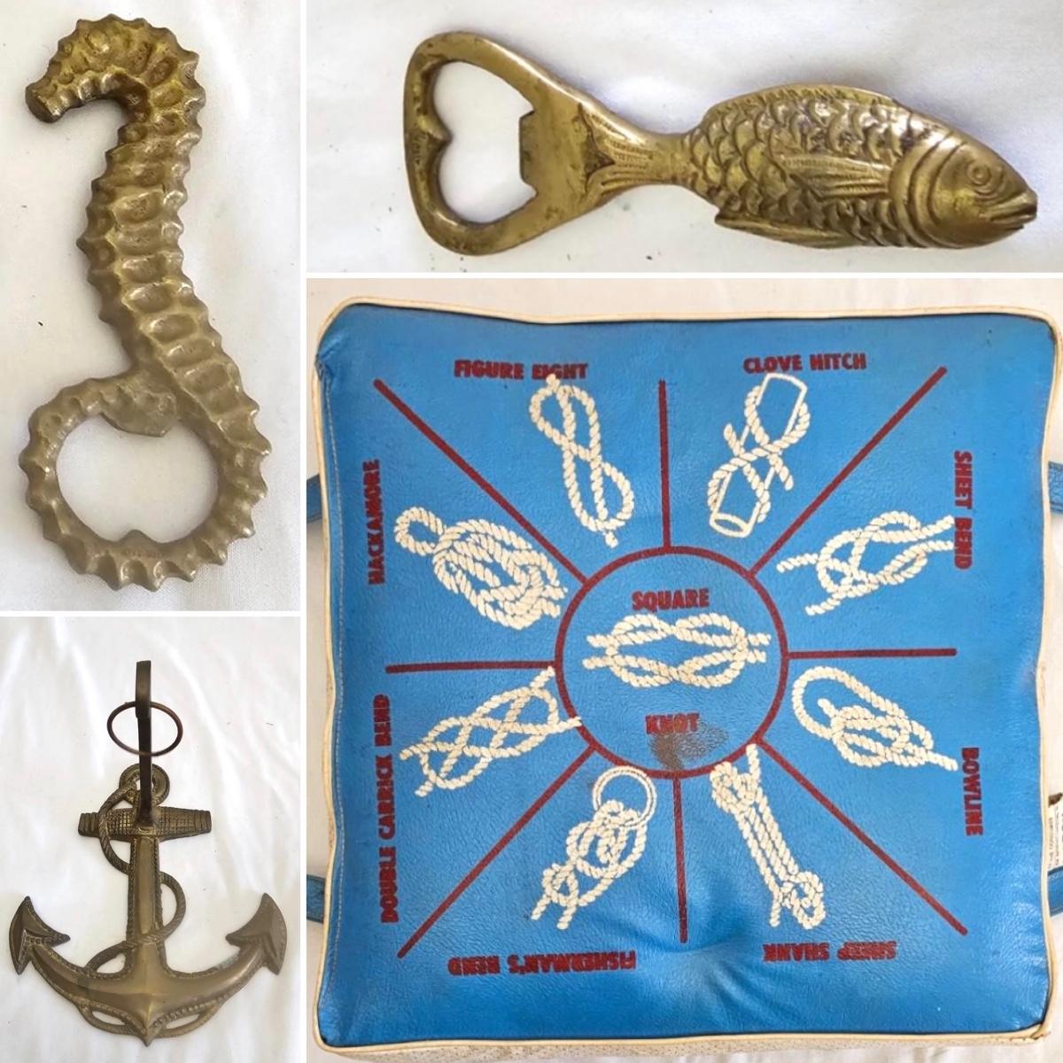 Vintage Sears & Roebuck Boat Seat w/ Brass Nautical Theme Items & More (LR-JS)