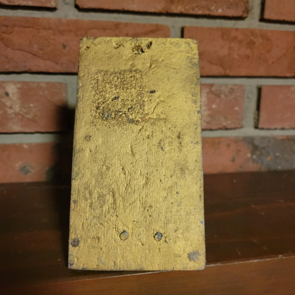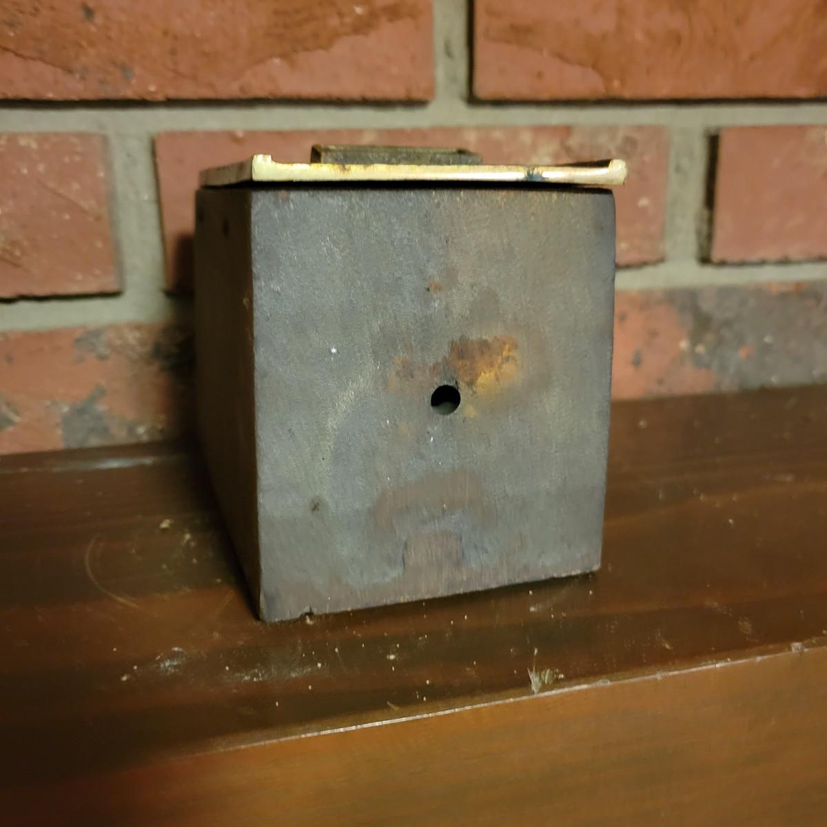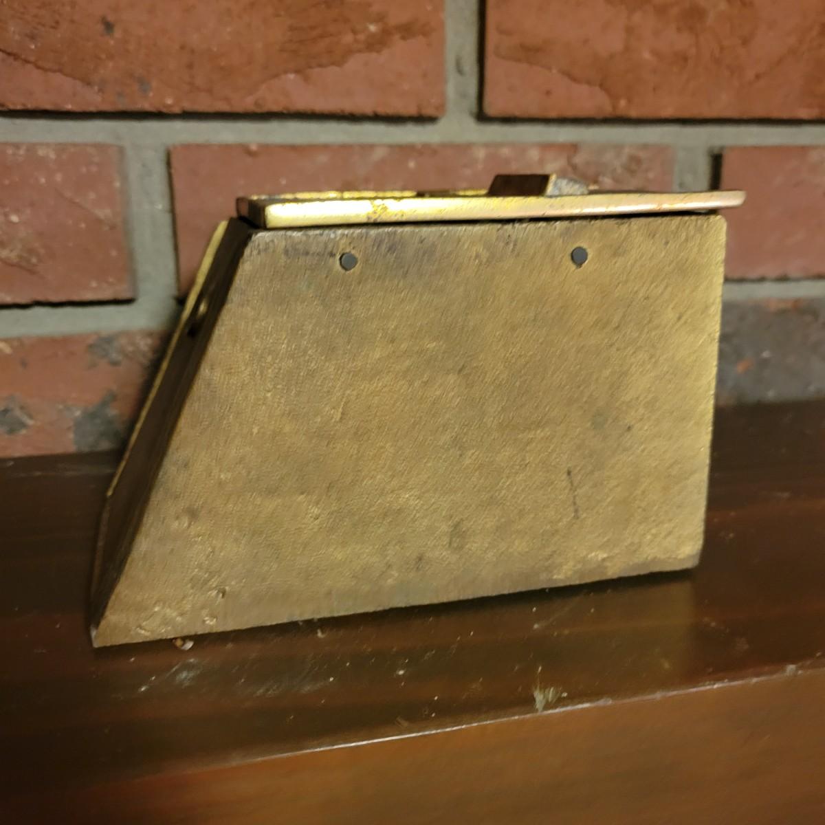 A brass offering Box that appears to be cast and measures approximately 3" x 6" x 4"H. There is no key to open the box with. Shipping available