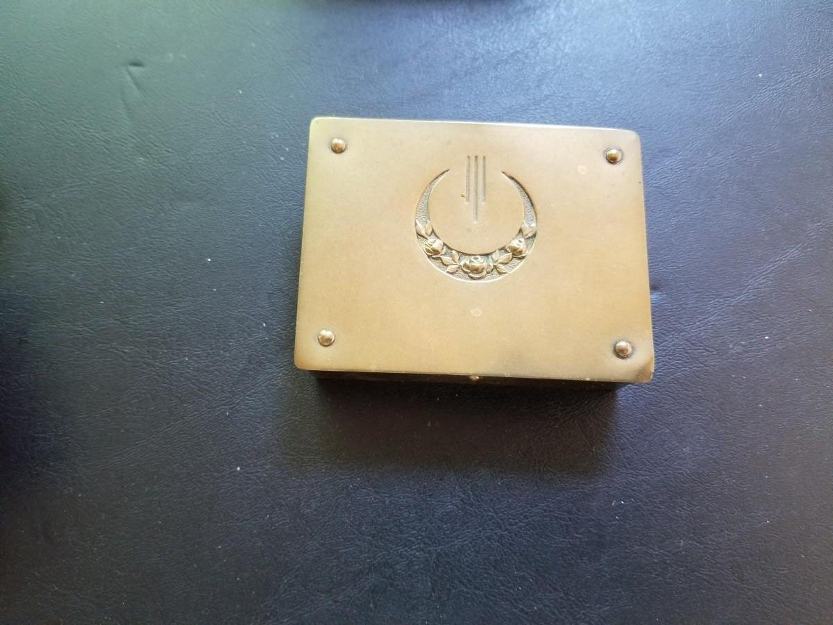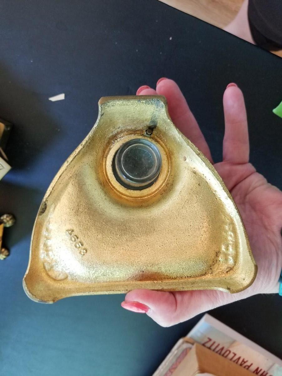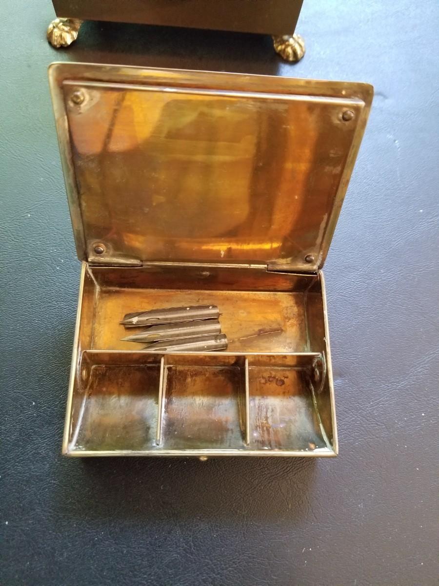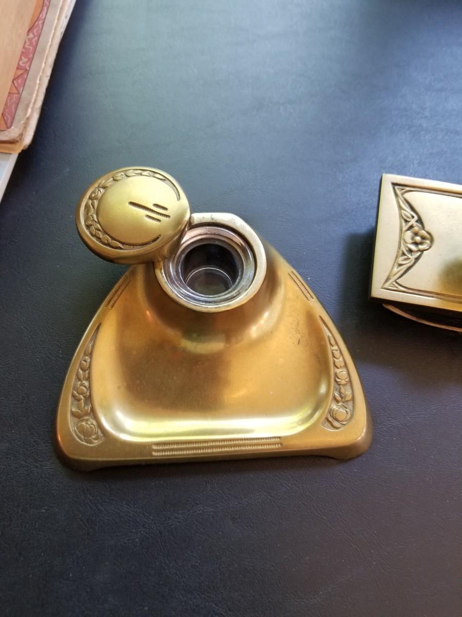 Inkwell with glass ink dish, mail holder, snuffbox