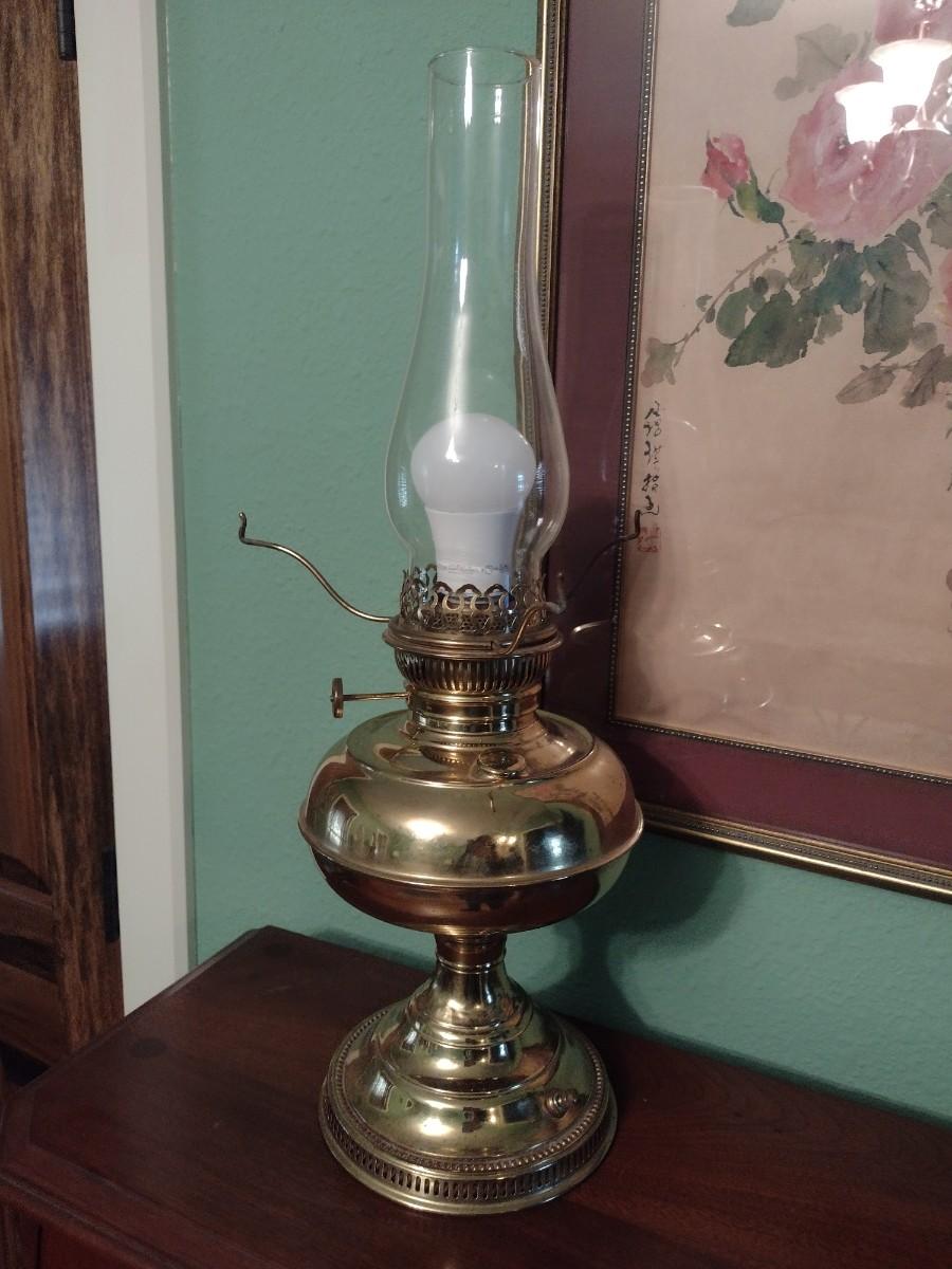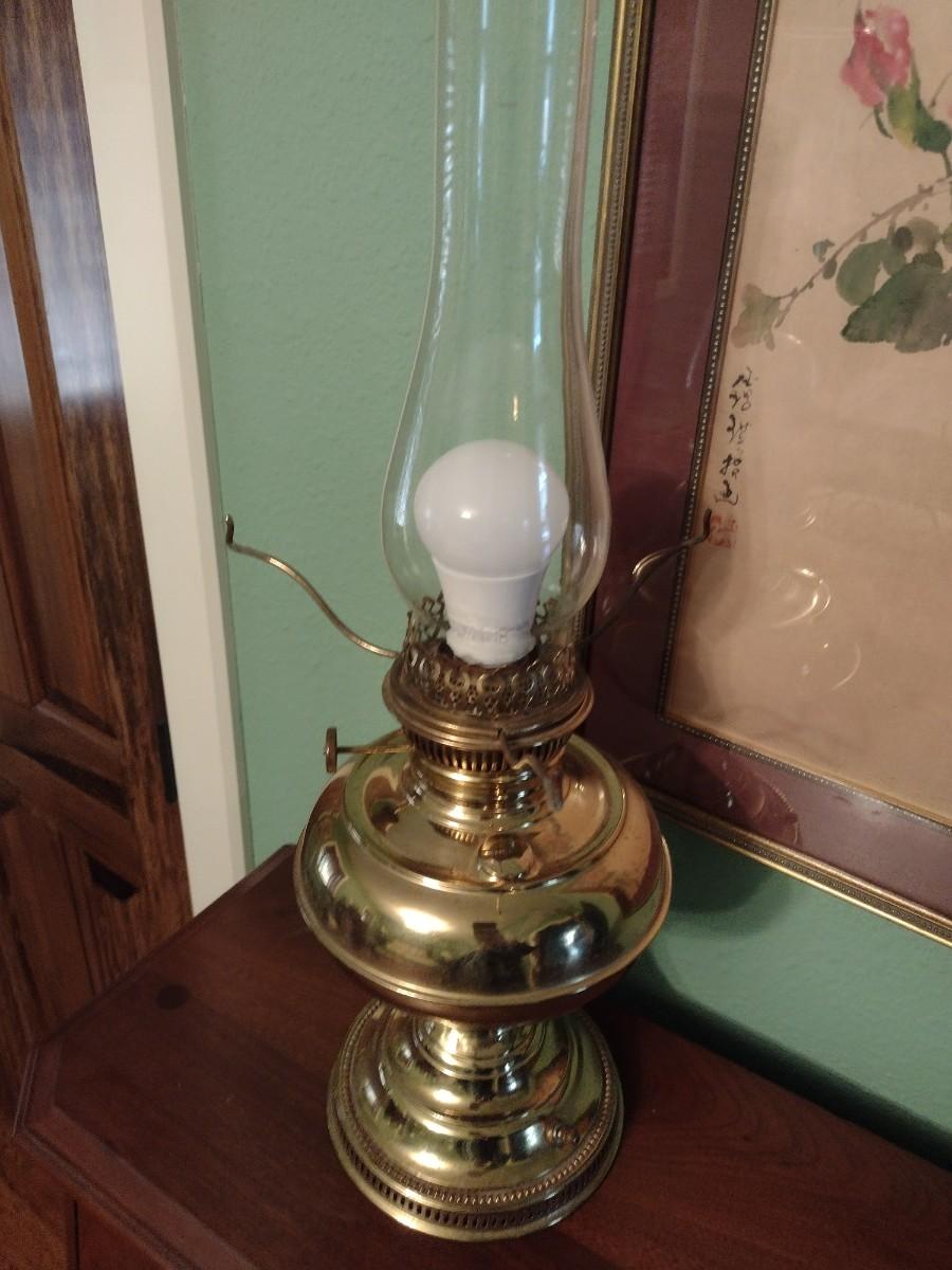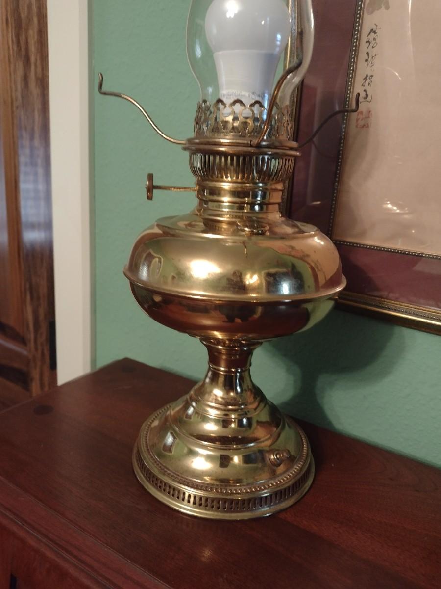 Brass Oil Lantern with Glass Shade Converted to Electric. Globe is missing.