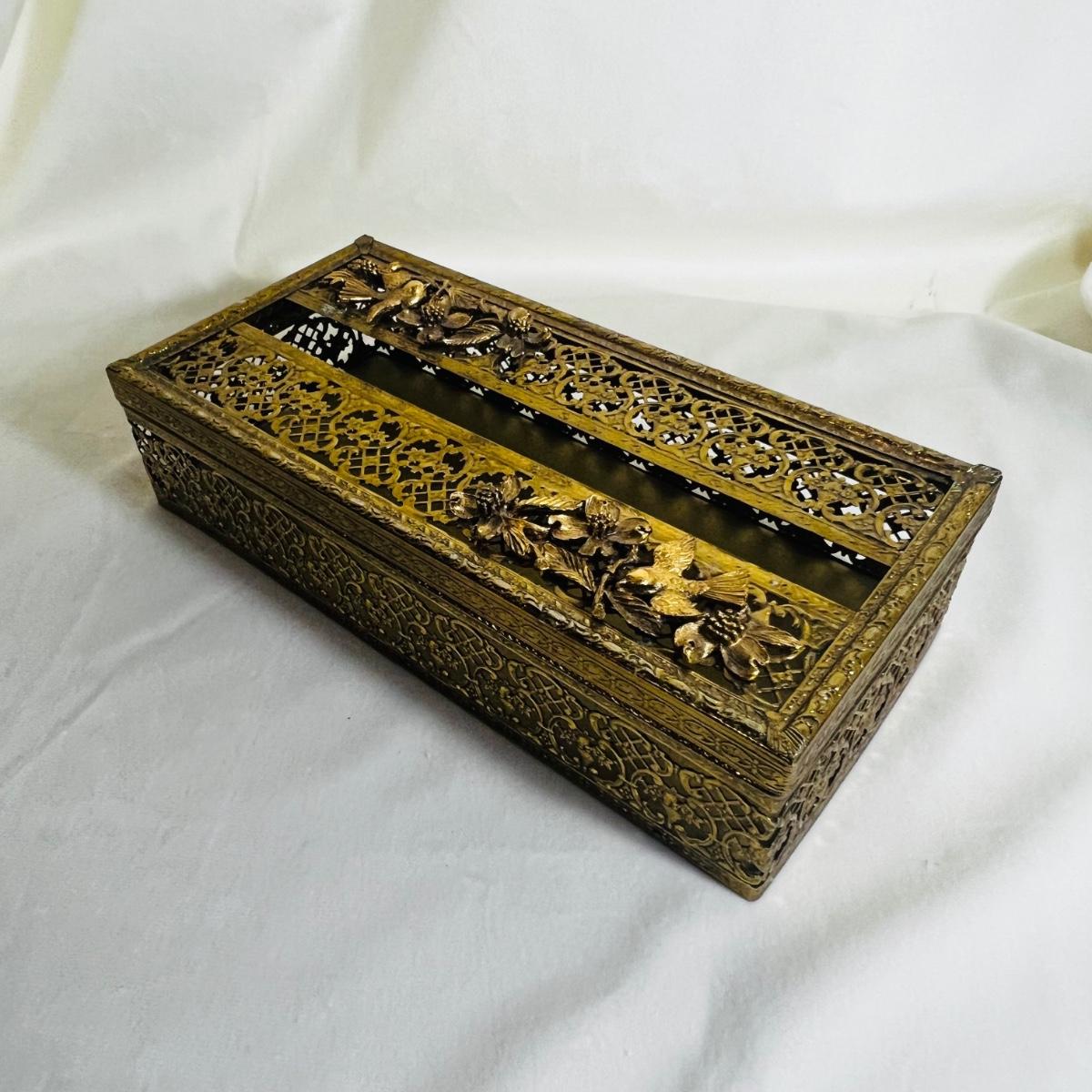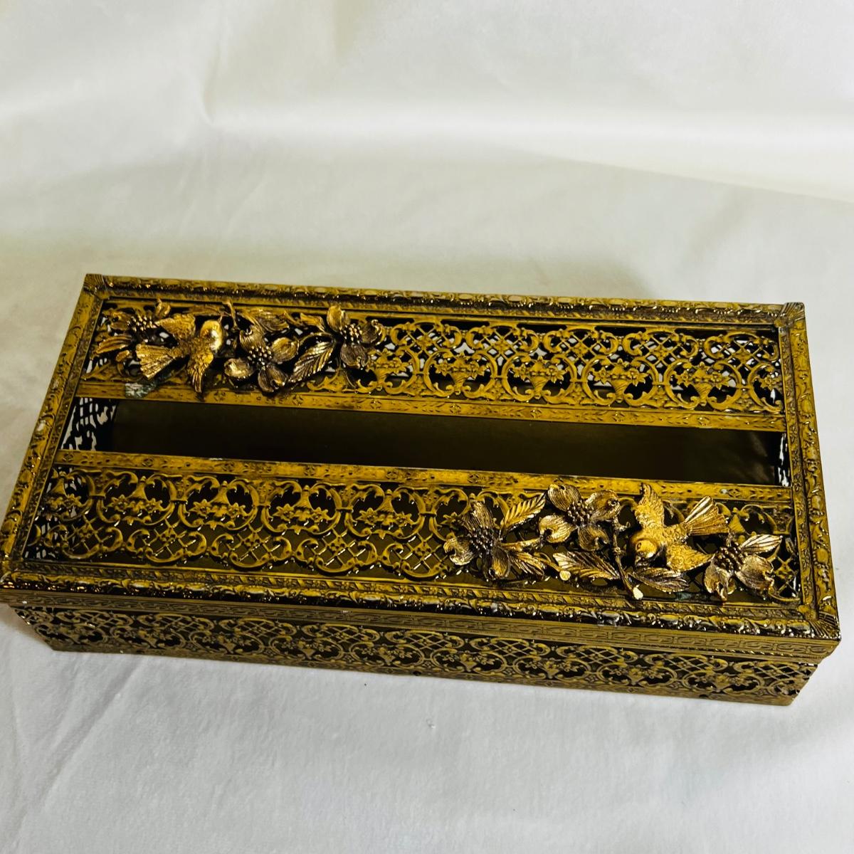 Vintage Gold Ormolu Ornate Box Paper Tissue Holder Case