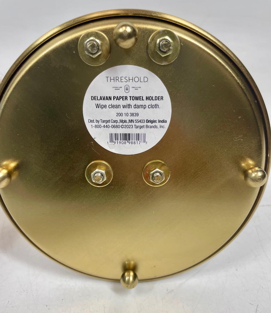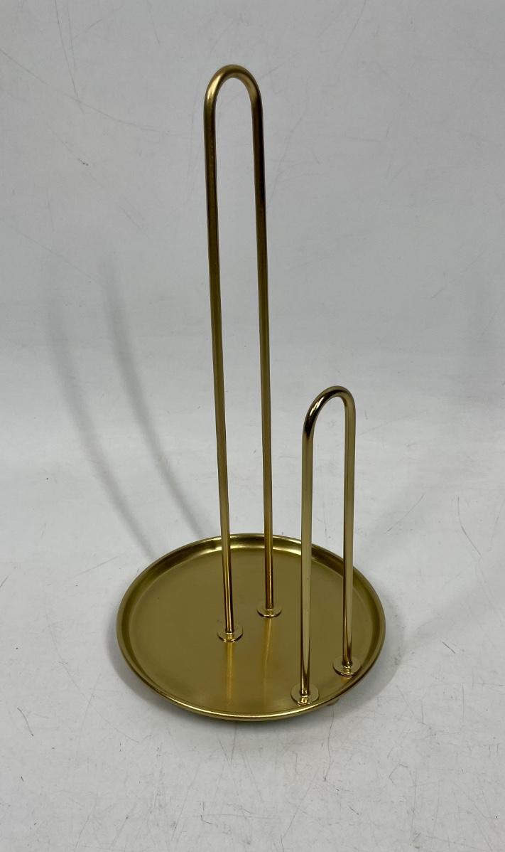 Upright countertop style paper towel roll holder. Bright brassy finish.
