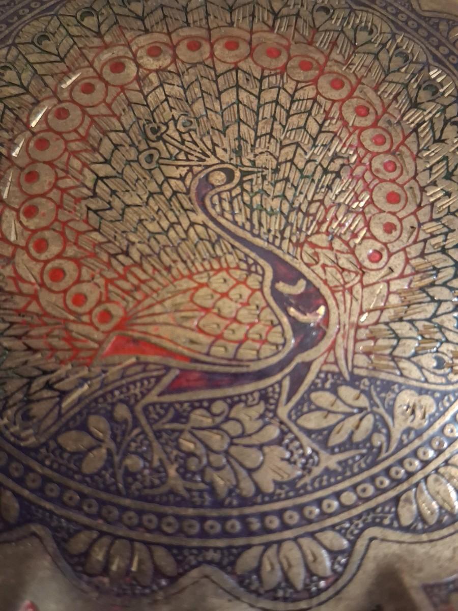 Approximately 6" beautiful brass & cold painted Peacock wall art.