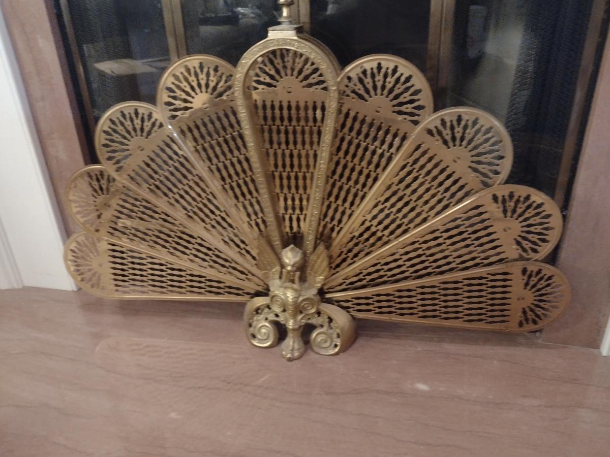 Brass Peacock Style Fireplace Screen- Approx 25 3/4" Tall