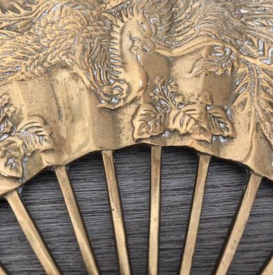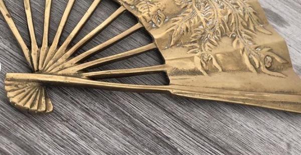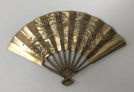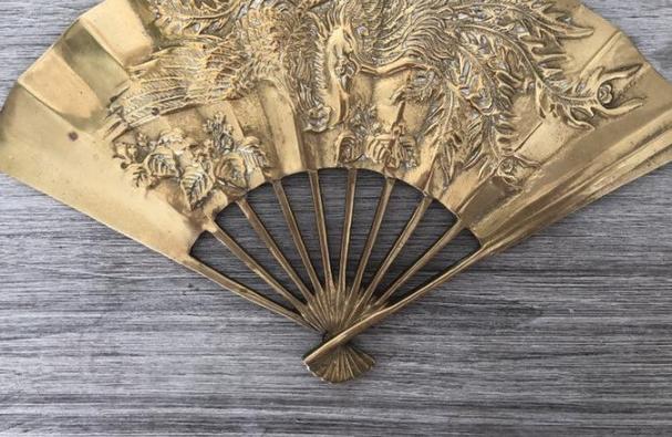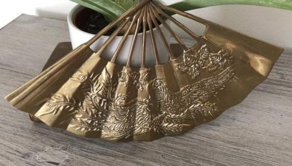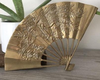 Vintage, Decorative Brass Peacock Style Wall Fan, Fire Breathing Dragon 11.5" x 7.25" x 2.25"