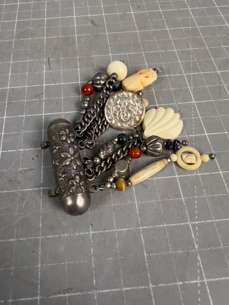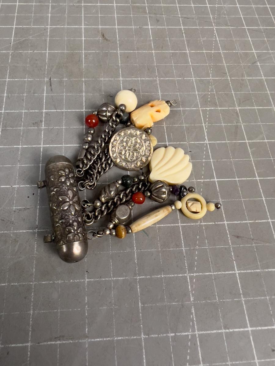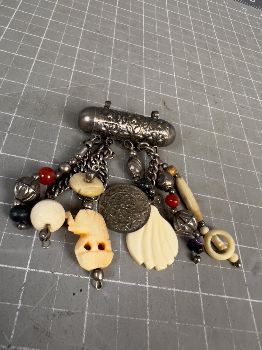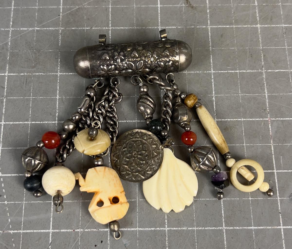 Brass Pendant with Fetishes of Bone