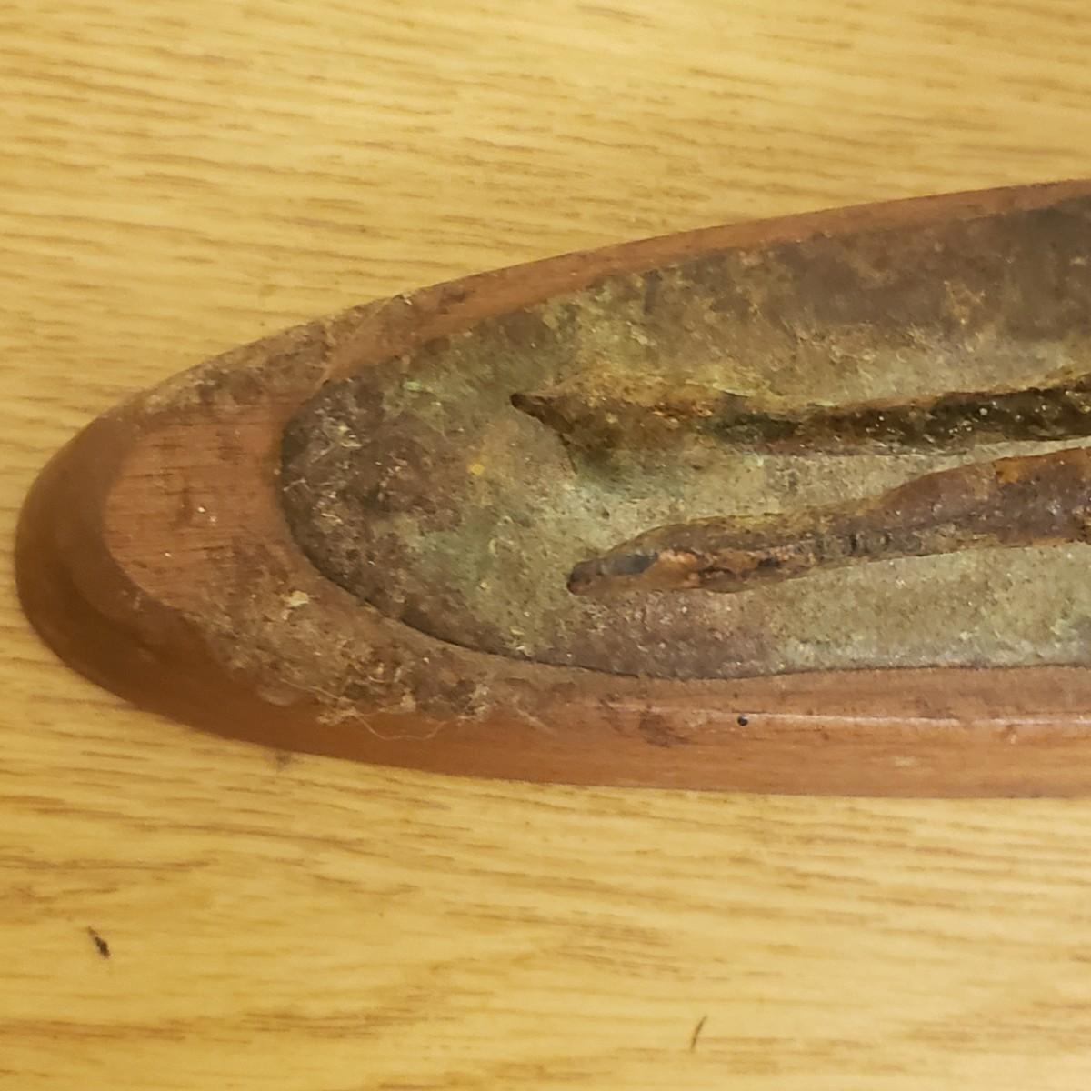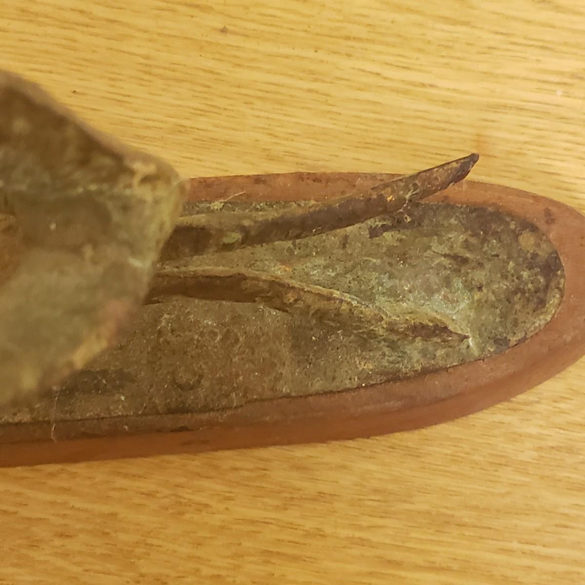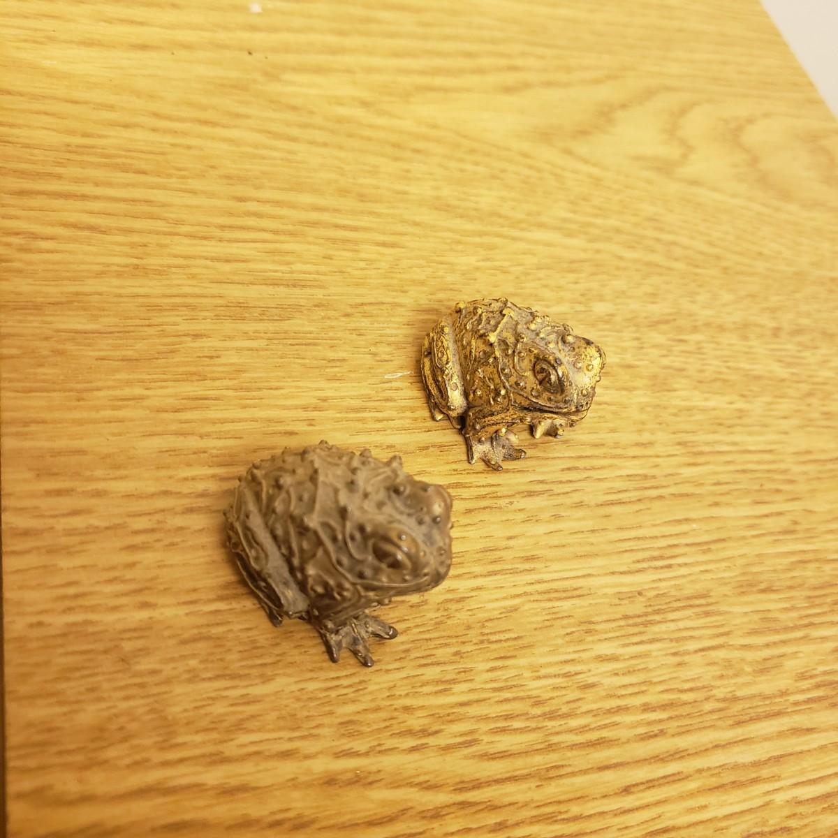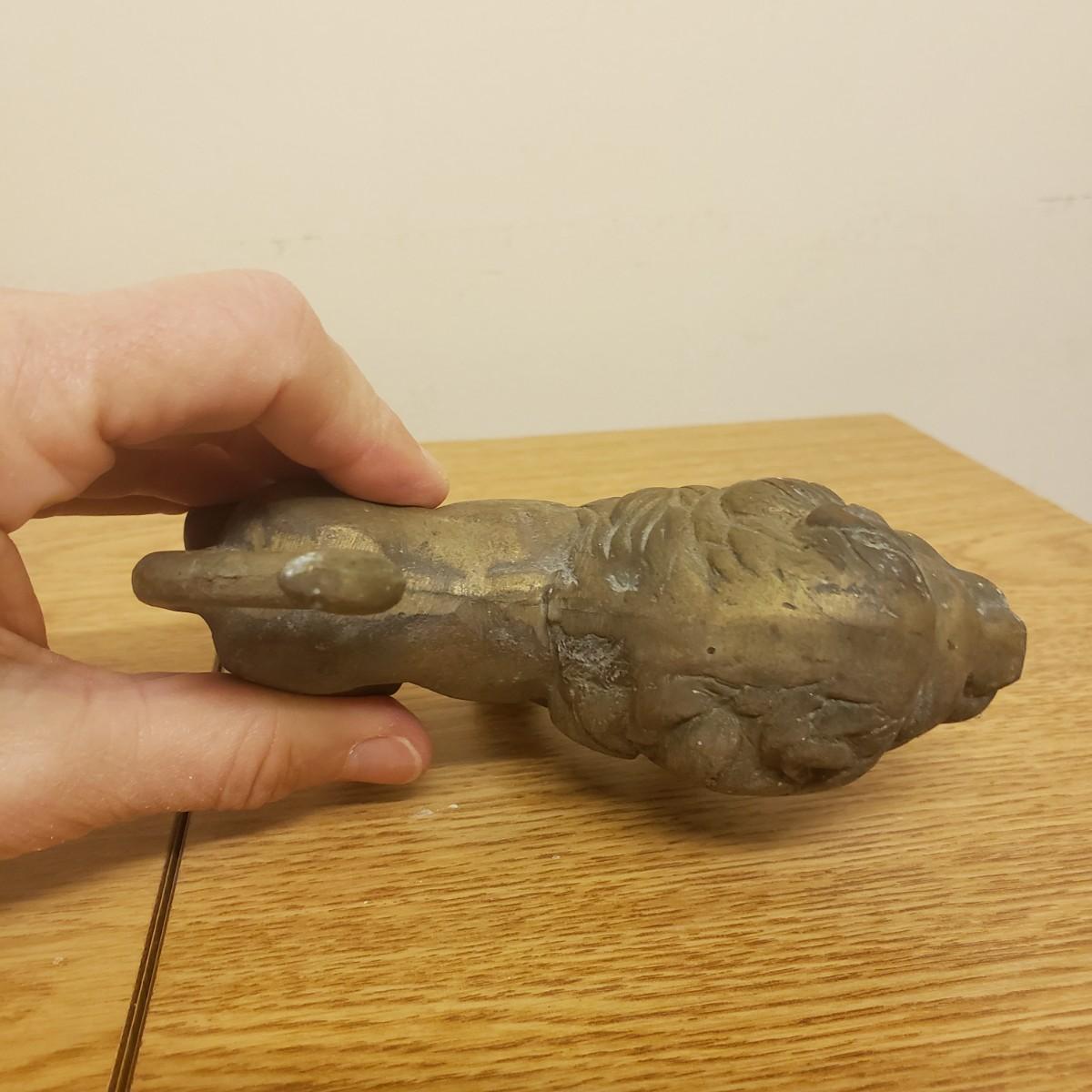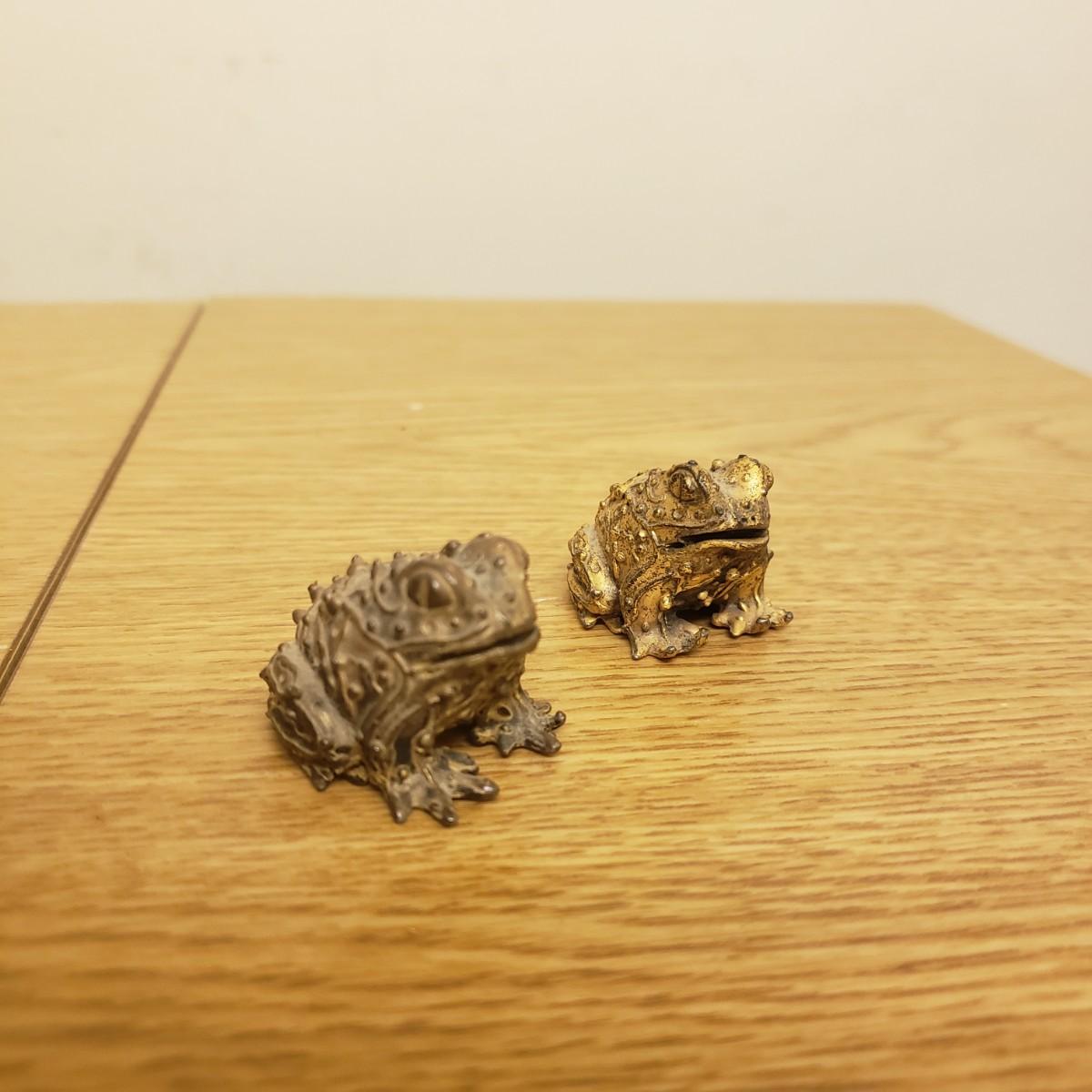 This eight piece brass and metal lot features some unique pieces. The brass owl measures 6" x 3" x 7"H. There are two Feng Shi money frogs. The Ibex sculpture is possibly by artist Bill Lett in the brutalist style. This piece measures 14" x 3" x 7"H.