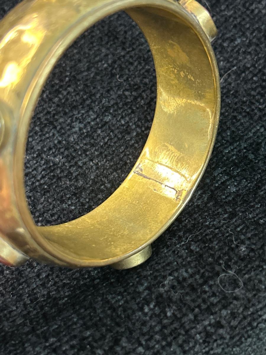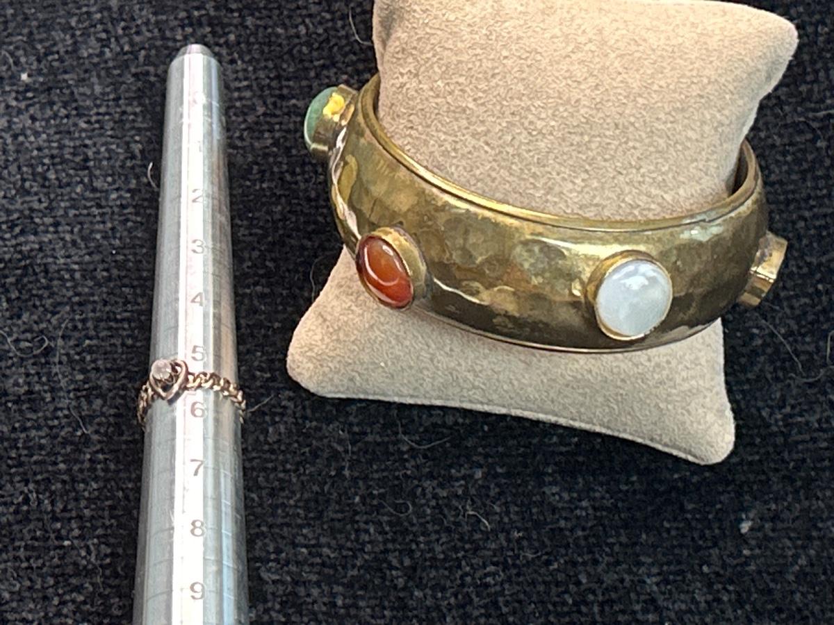 The stones are cold, it looks to be very old. 6 stones total. Unstamped ring as well.