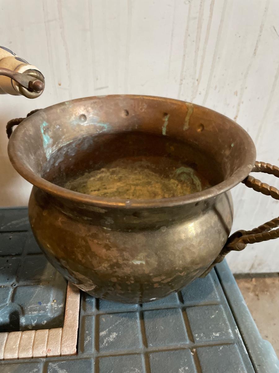 Brass pot with decorative handles small brass pot