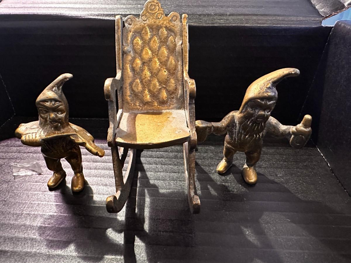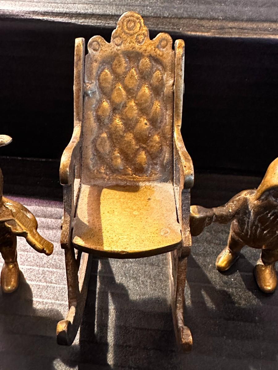 Bring a touch of nostalgia and charm to your home decor with our Miniature Brass Rocking Chair featuring two solid brass figurines. This exquisitely crafted miniature rocking chair is made from high-quality brass, showcasing intricate detailing and a shiny finish that will add a touch of elegance to any room. The two accompanying solid brass figurines add a whimsical touch, making this set a delightful addition to your collection or a unique gift for a loved one. Perfect for displaying on shelves, mantels, or desks, this Miniature Brass Rocking Chair with figurines is sure to spark joy and conversation wherever it is placed. Shop now and add a touch of vintage flair to your space.