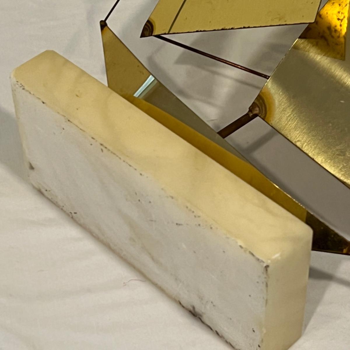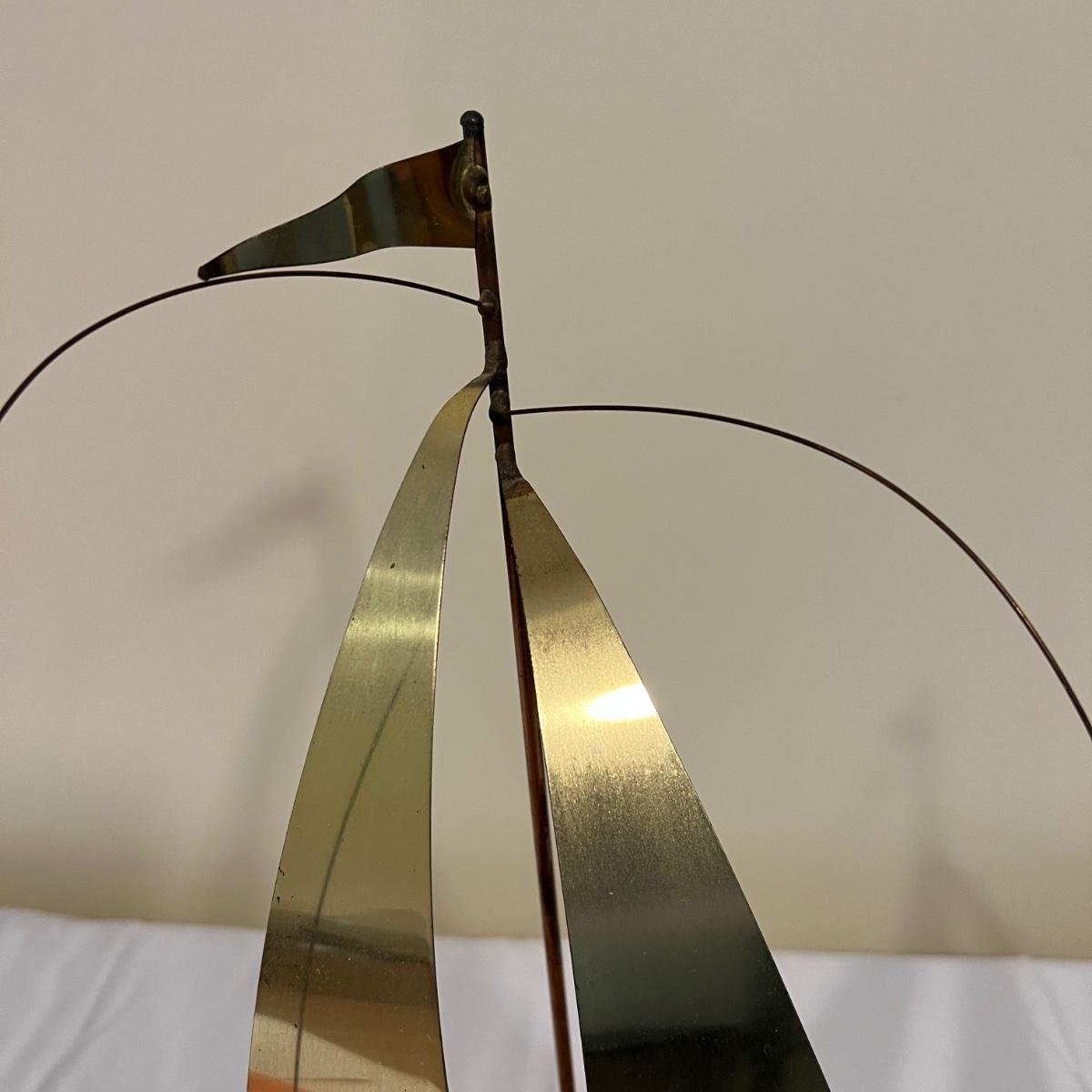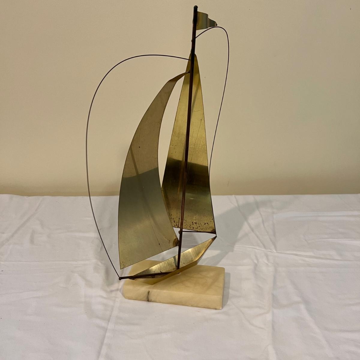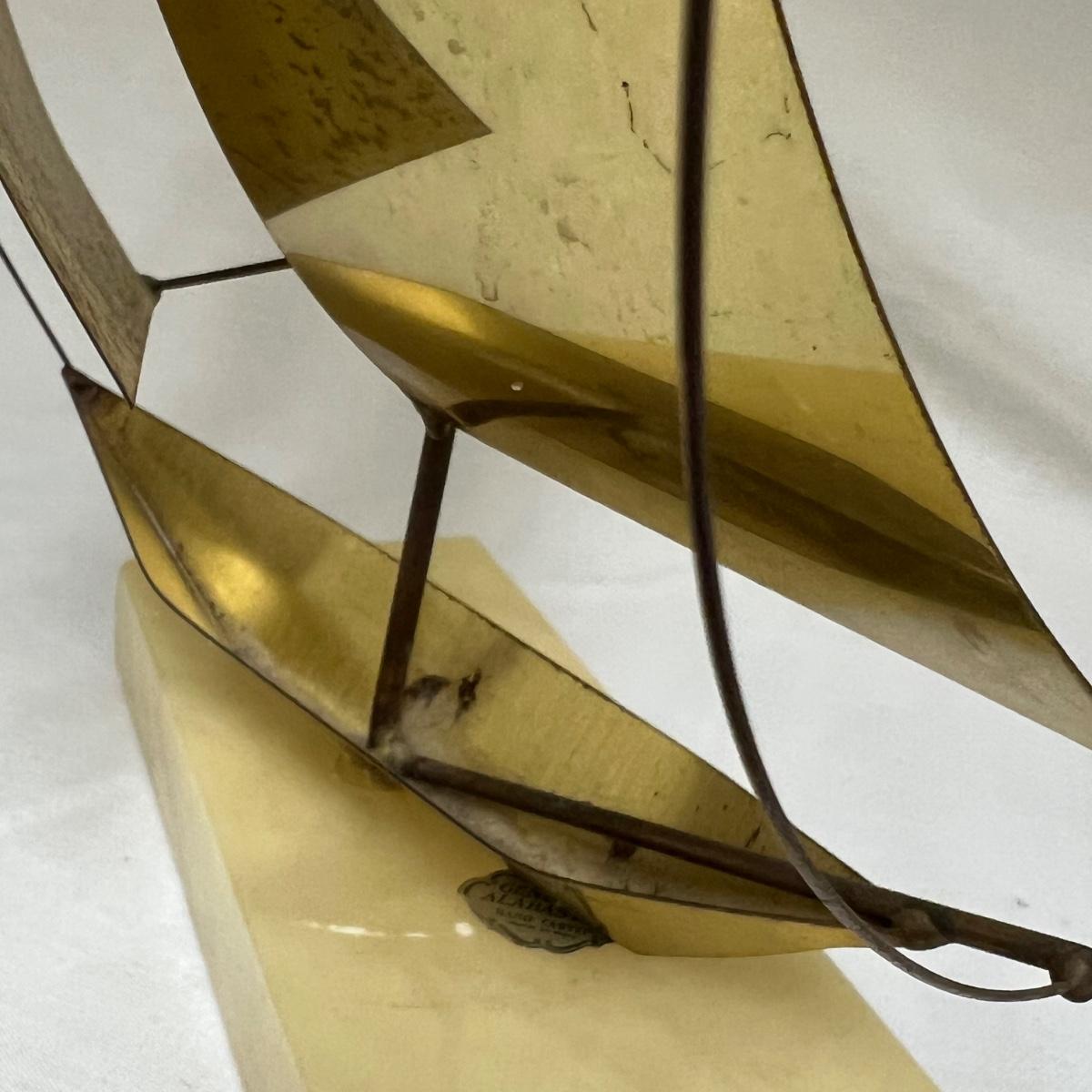 A vintage brass sailboat that is mounted on an alabaster base. There is some minor tarnished spots, see images.