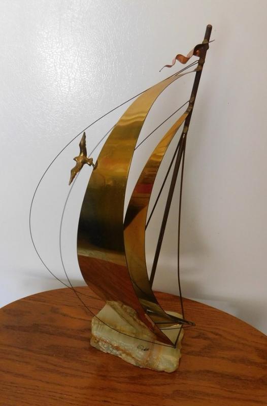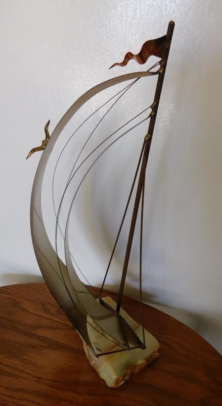 Brass Sailboat with Marble Base by DeMott  20"H