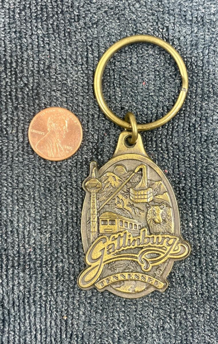 Brass key fob with Gatlinburg points of interest and attractions. In good condition.