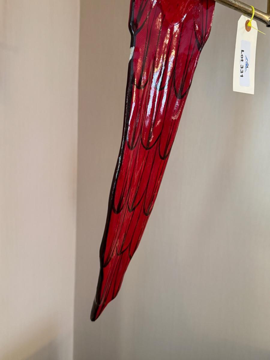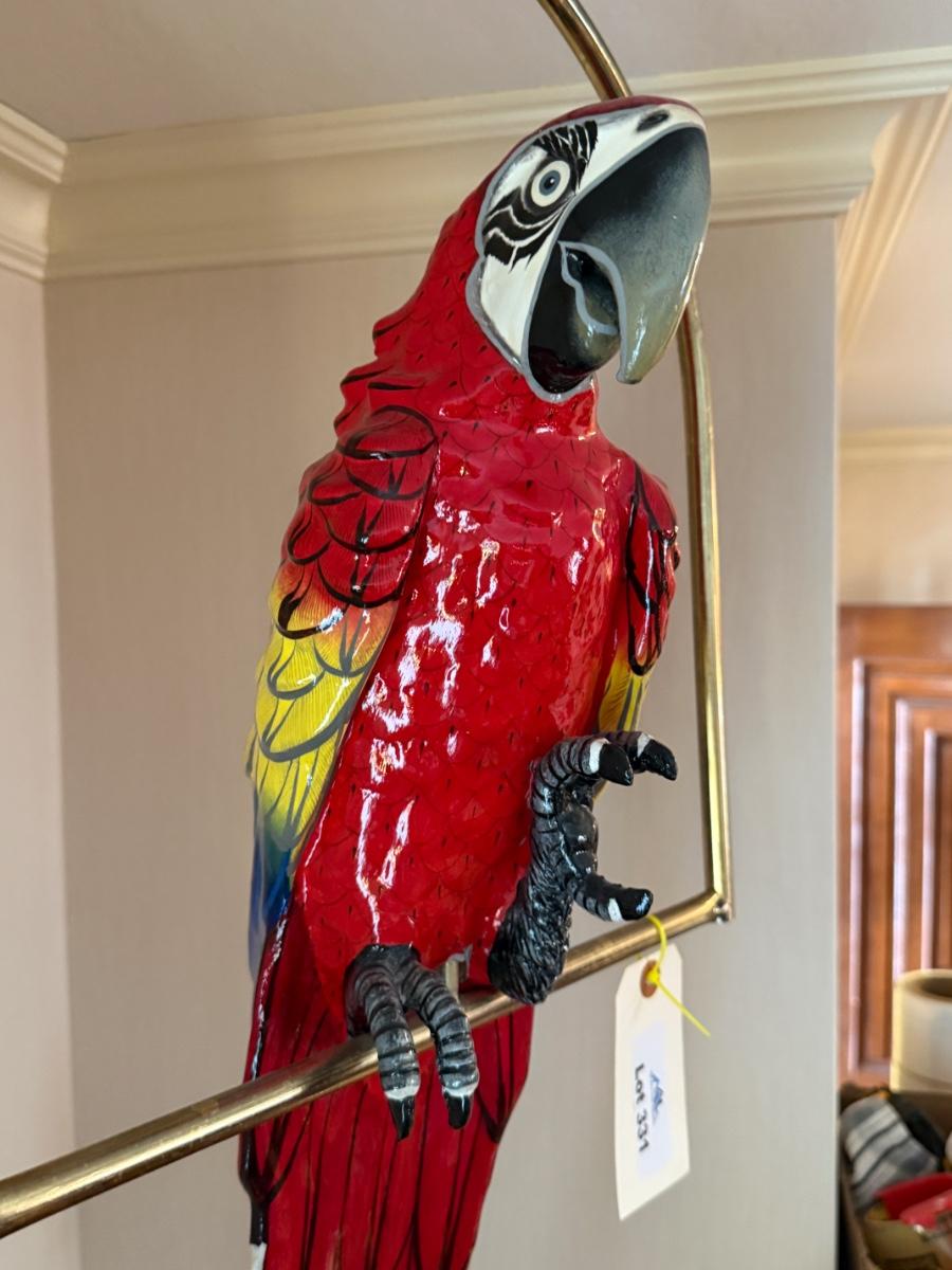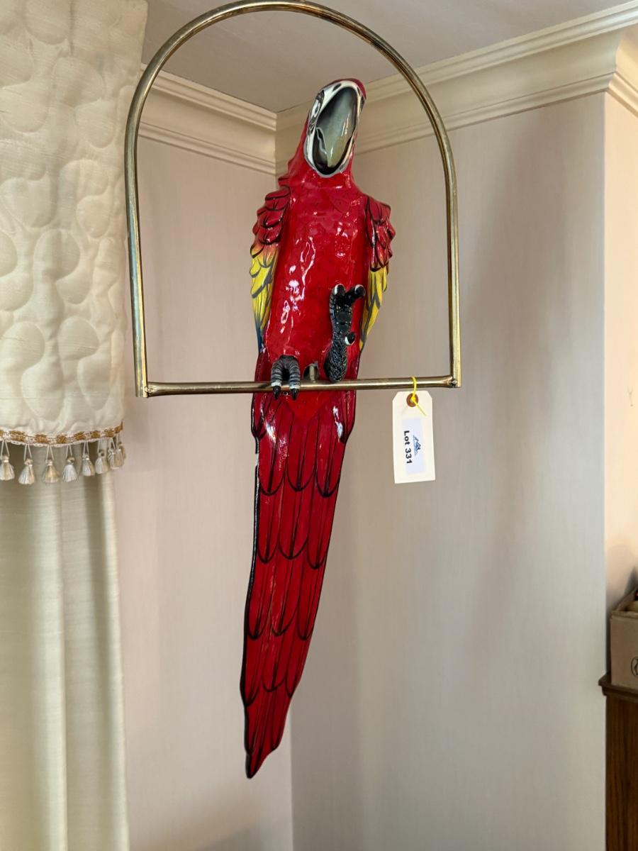full sized parrot on hanging stand - not sure if papermache or what bird is made of