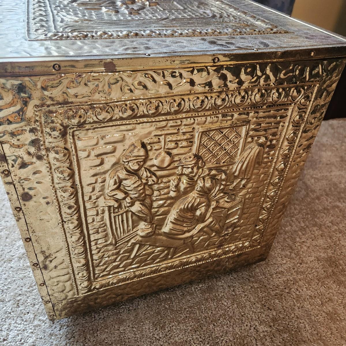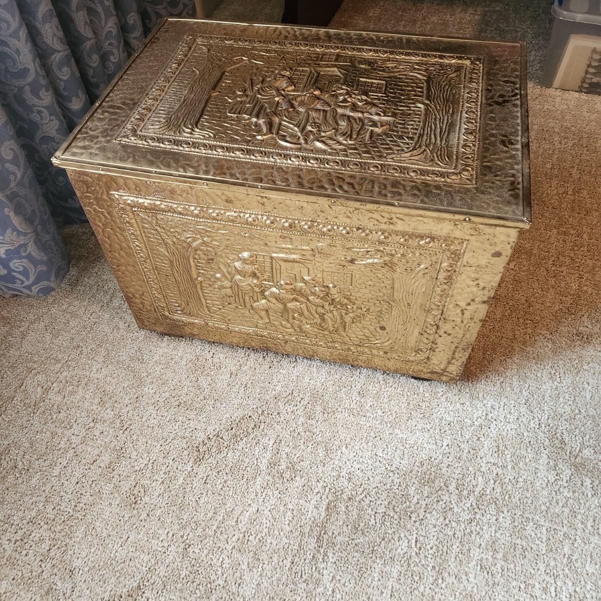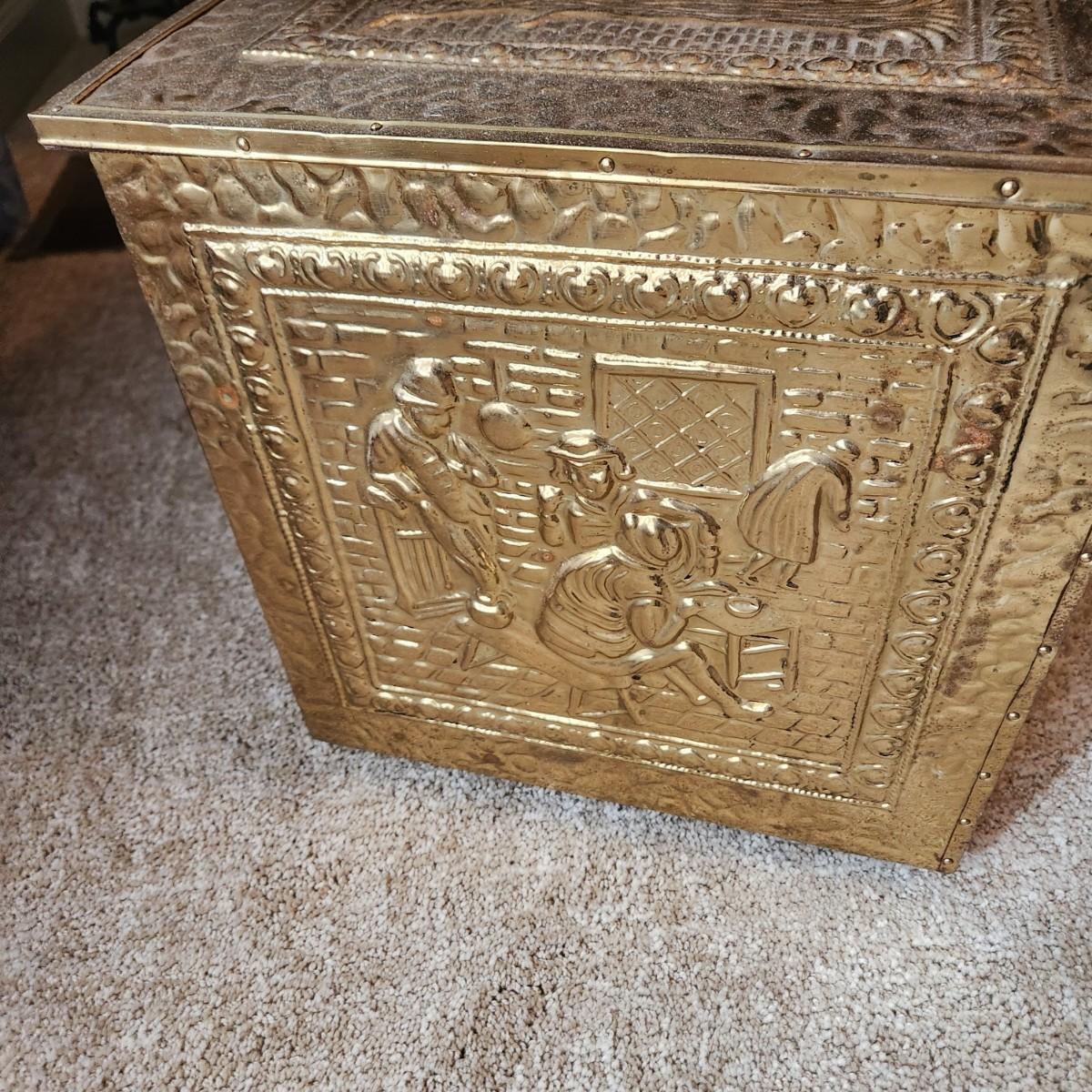 Brass Storage Box Fireplace Log Box 21x14x15