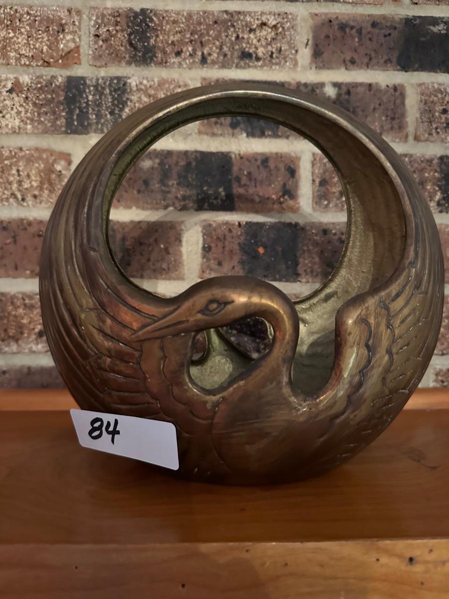 VINTAGE MID CENTURY BRASS DOUBLE SWAN BASKET PLANTER AS PICTURED