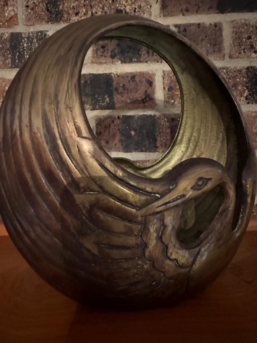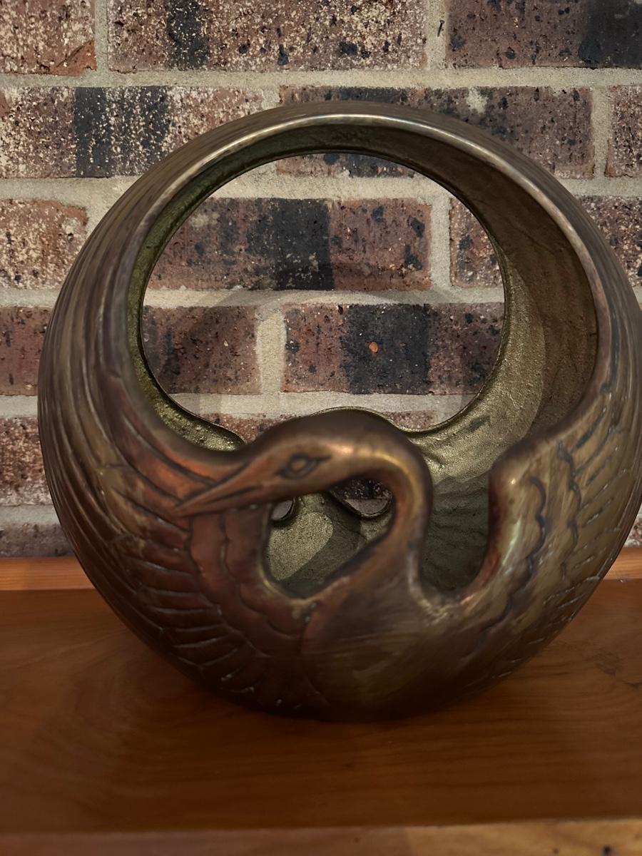 BRASS SWAN BASKET PLANTER