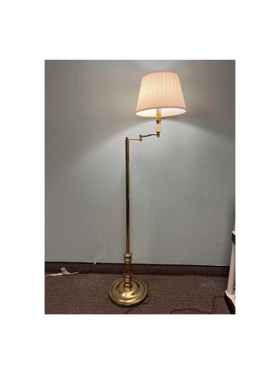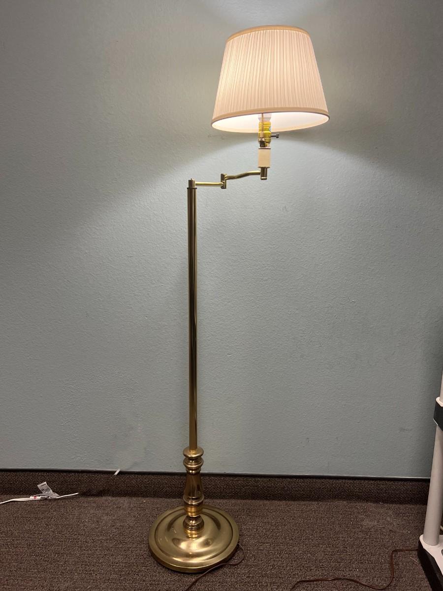 Brass Swivel Arm Standing Floor Lamp. About 4.5' tall, works.
