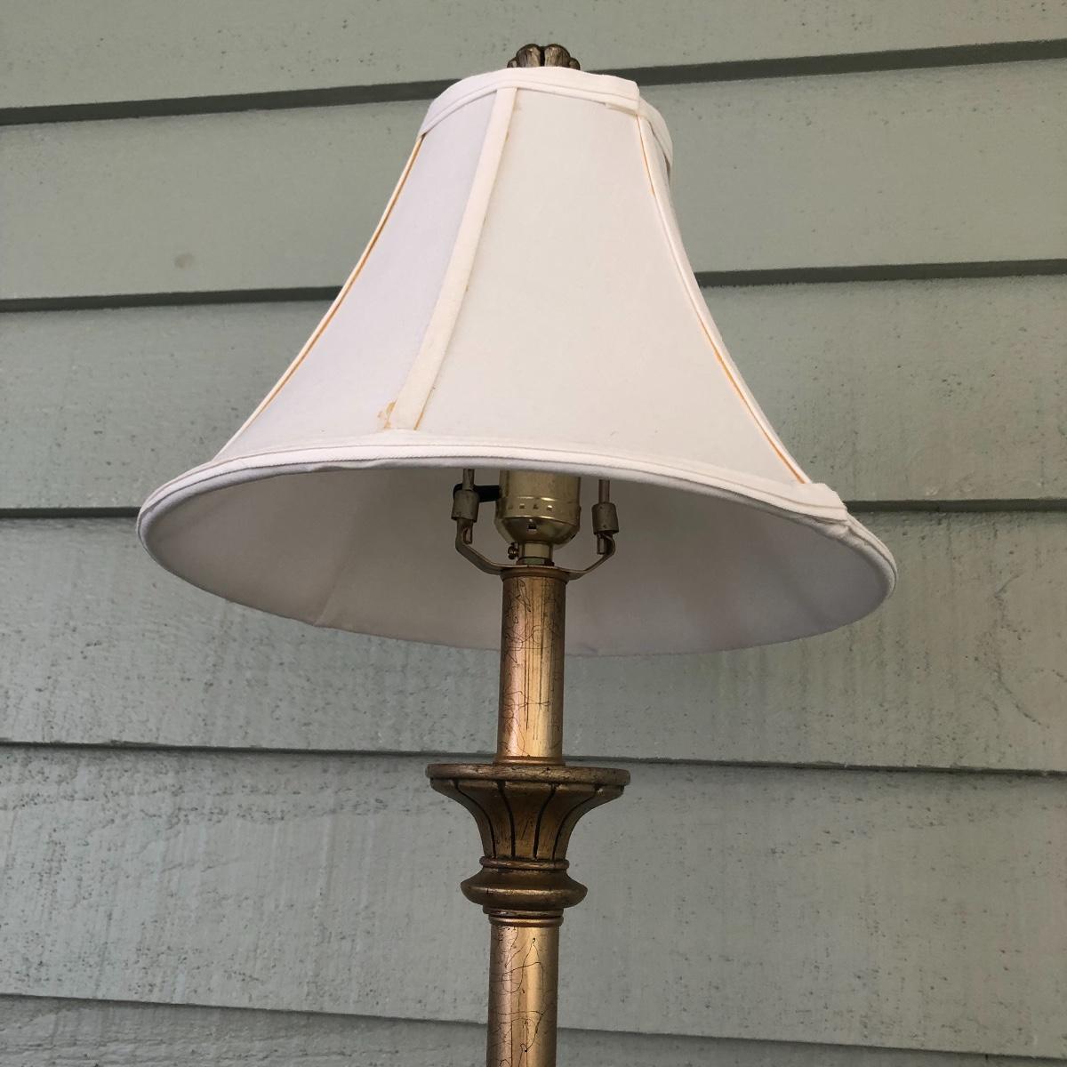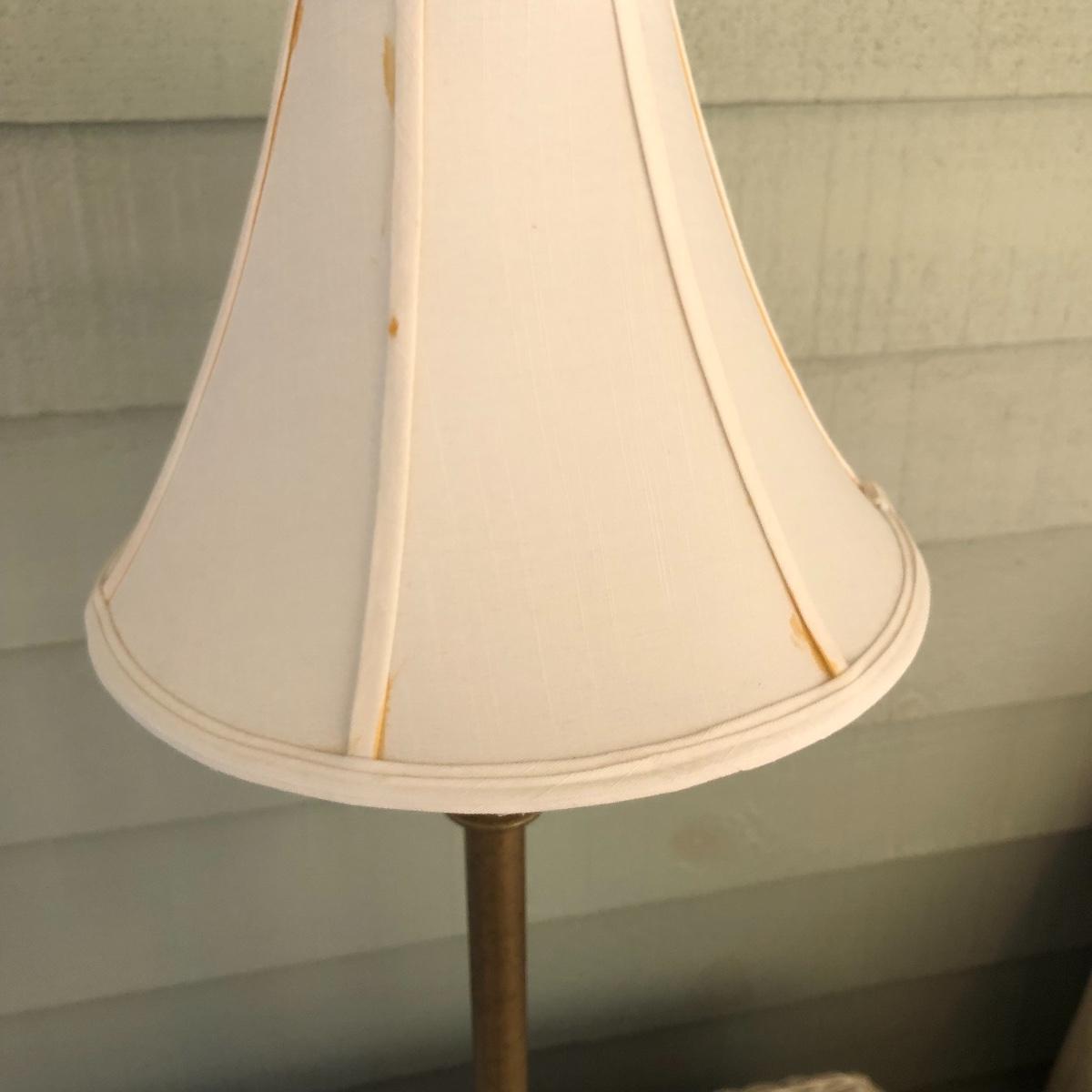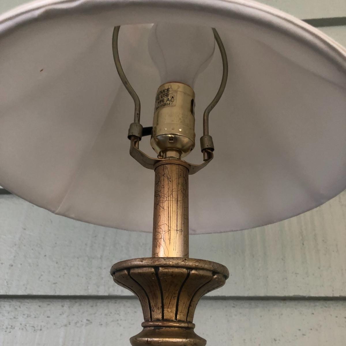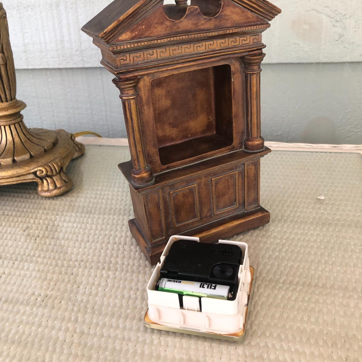 This lot includes a white metal wall plaque, a table Quartz clock and a brass colored table lamp. The metal wall plaque measures 15.5” x 15.5”. The bronze colored table clock is made of a dense material - similar to painted stone. It is battery operated and needs a new battery. It measures 5.5” x 2.5” x 8.5”. The lamp is about 33” tall and worked when tested. The wall plaque could use a fresh coat of paint. Local pick up only.