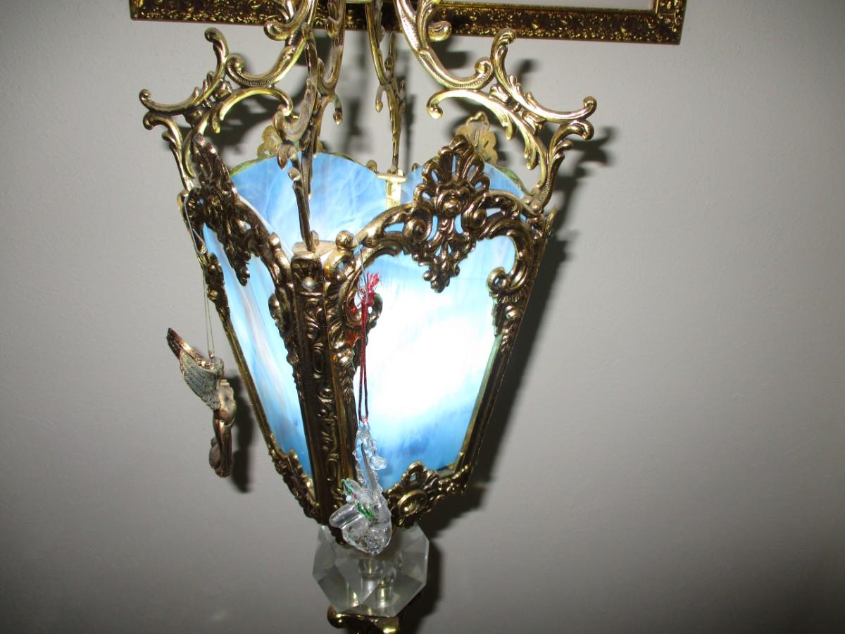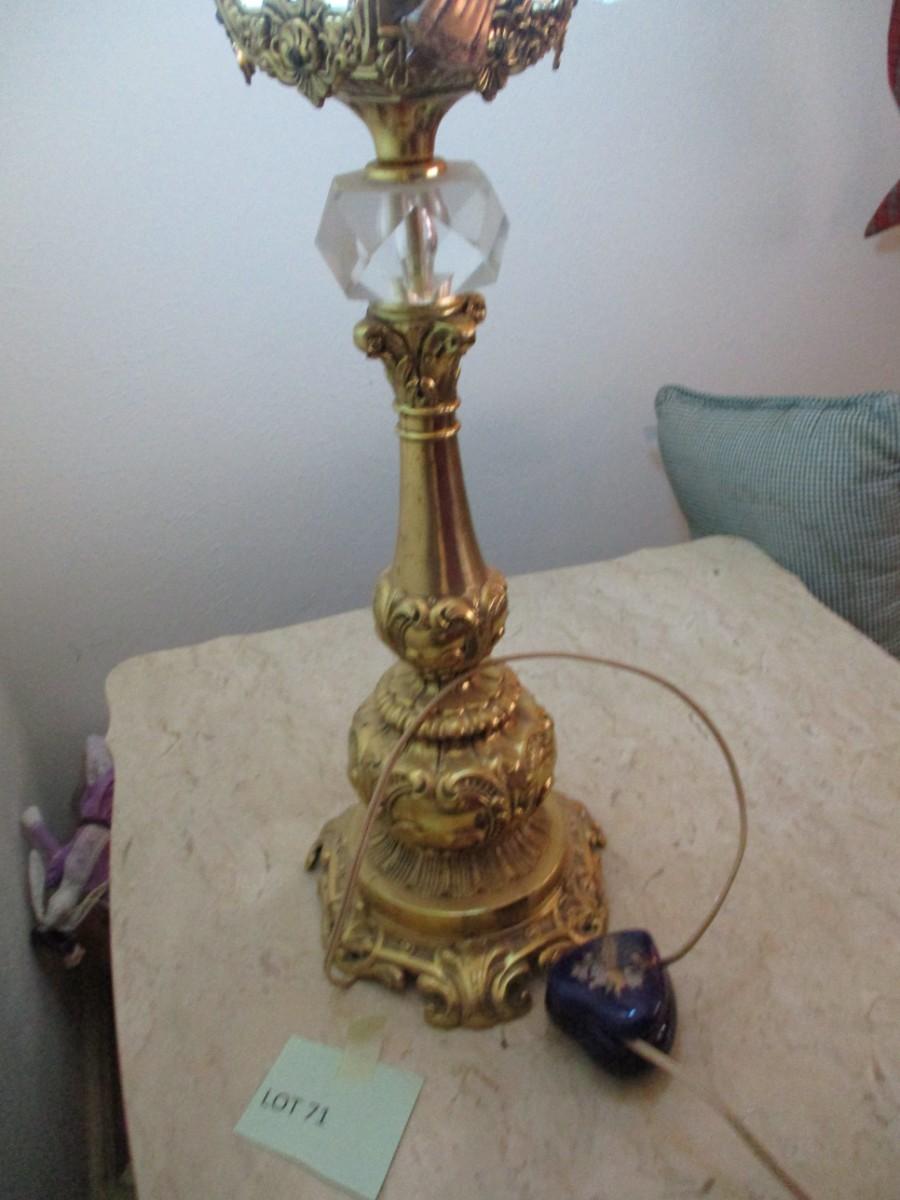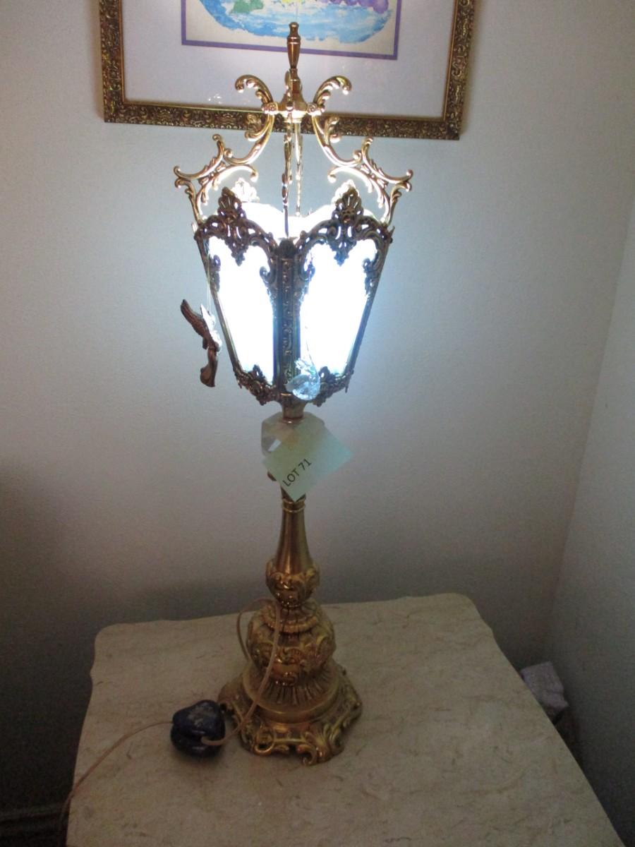 Brass Table Lamp w/Blue stained glass shade