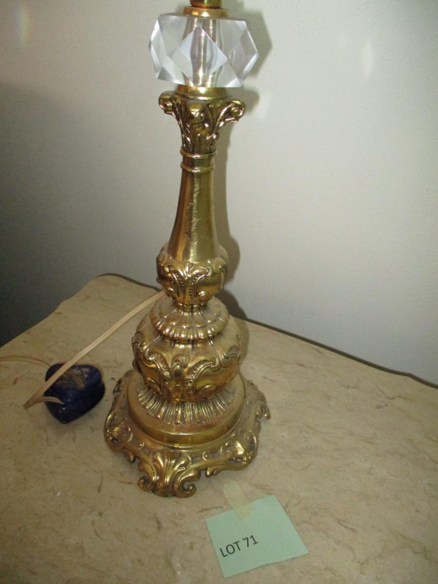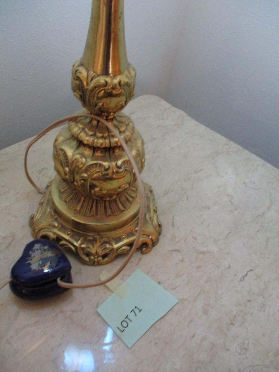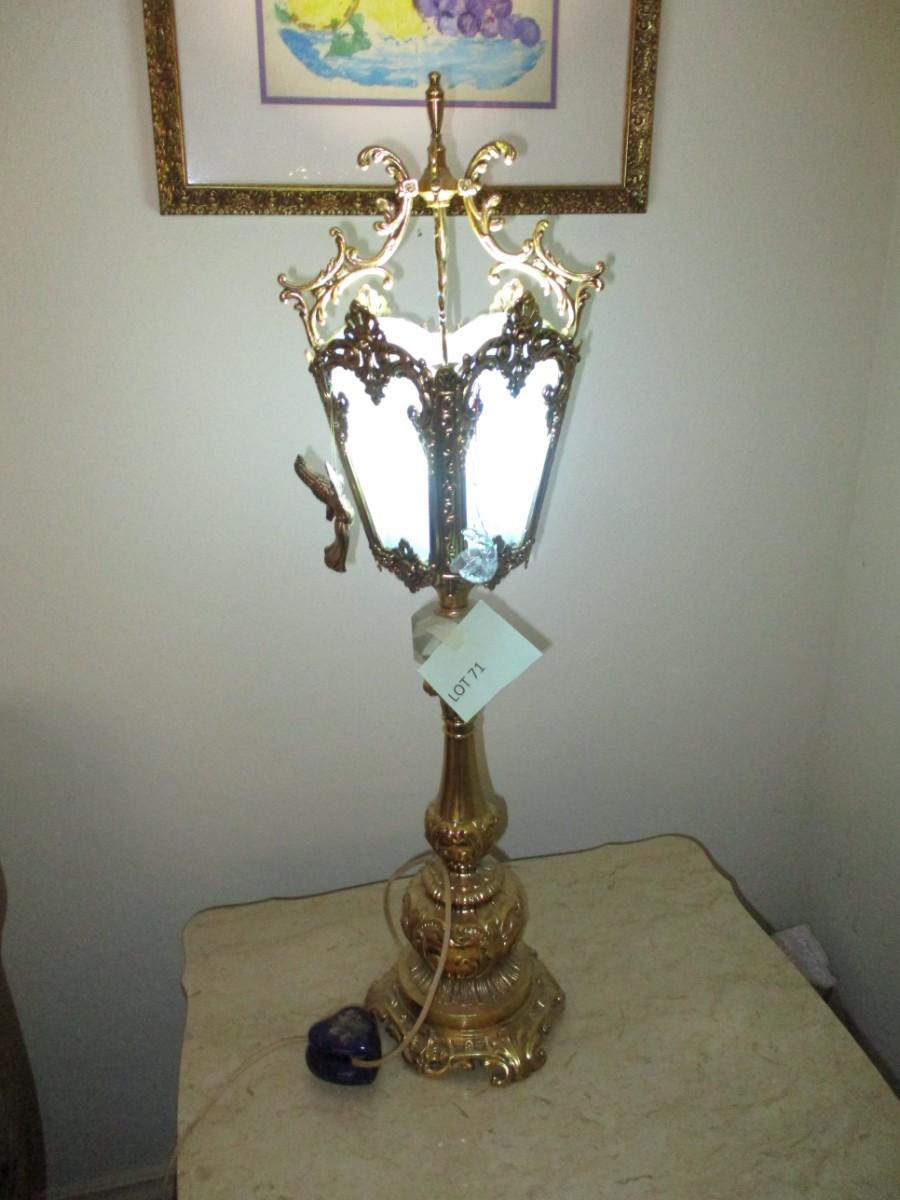 Brass Table Lamp w/Blue stained glass shade