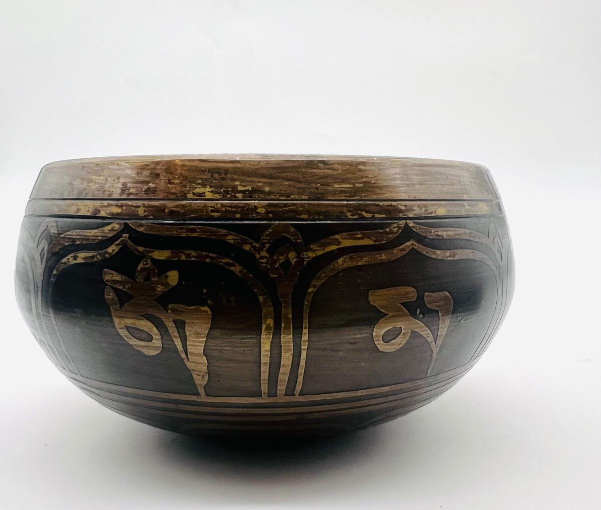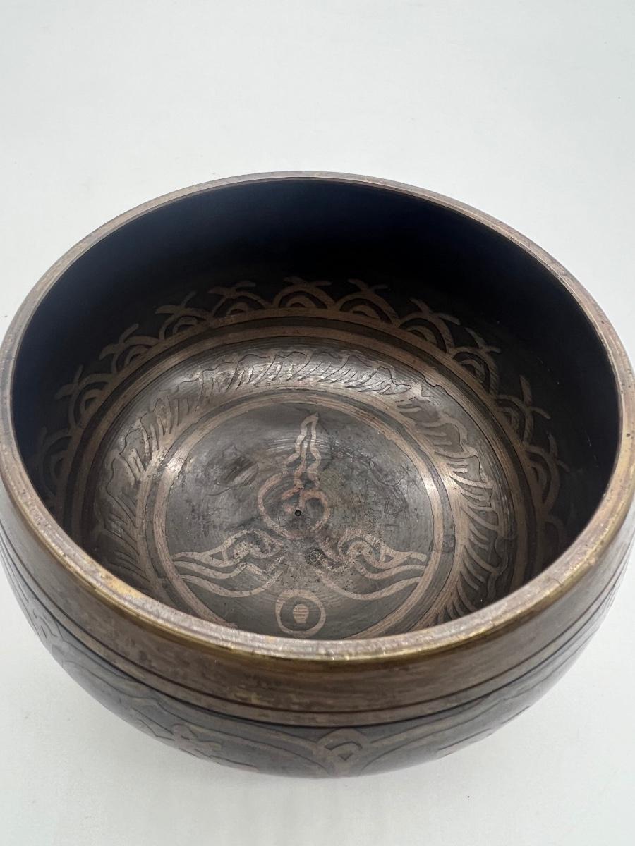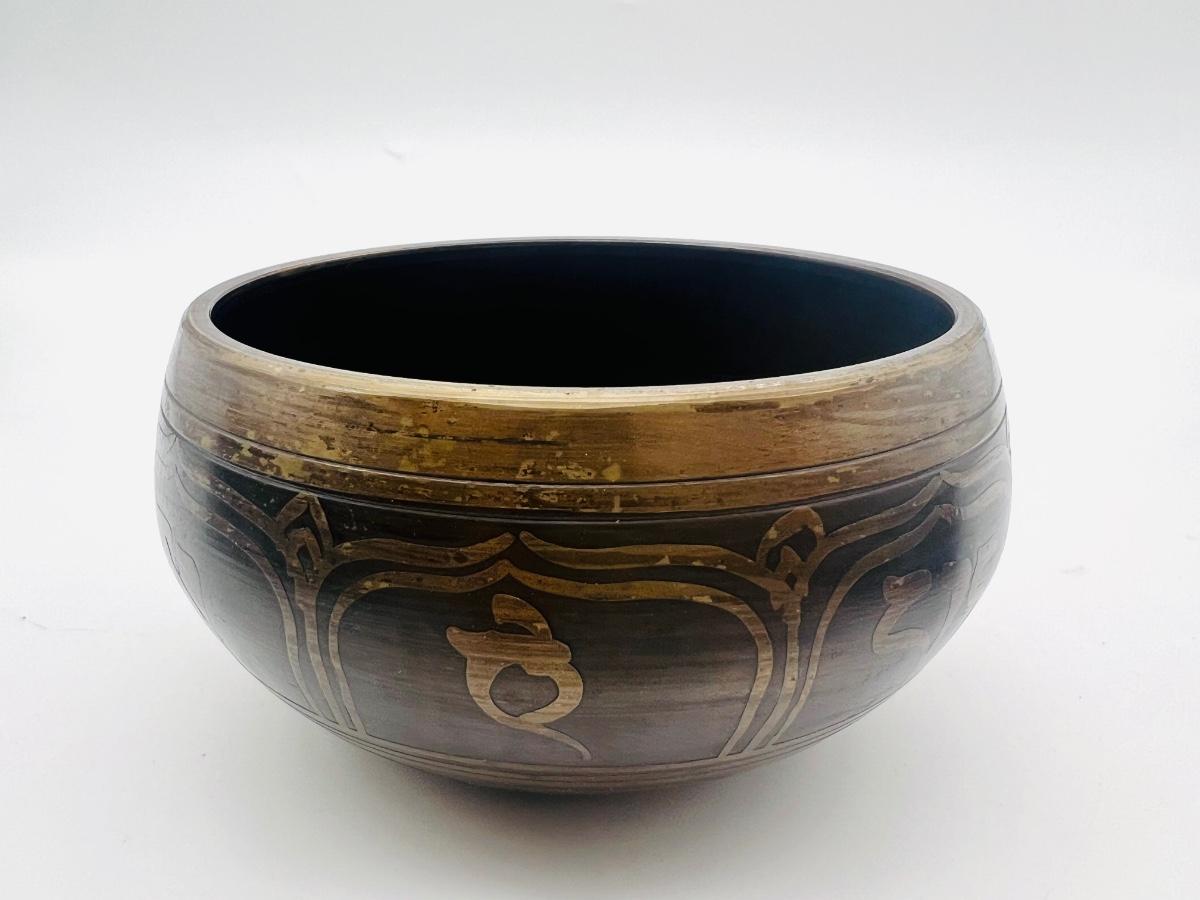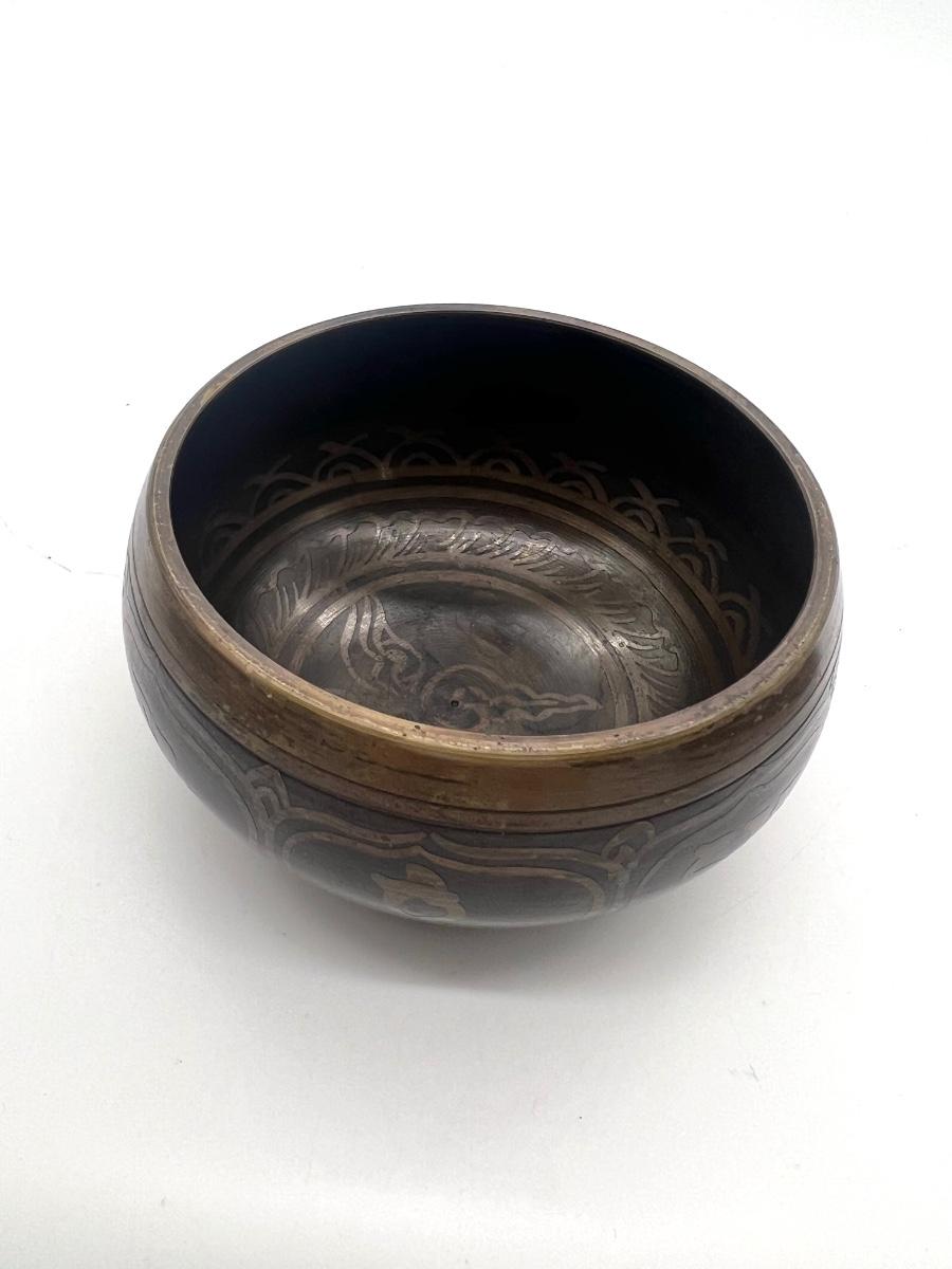 Made in India Brass Tibetan Singing Bowl measures 2 1/2 inches tall and 4 inches round