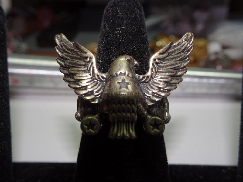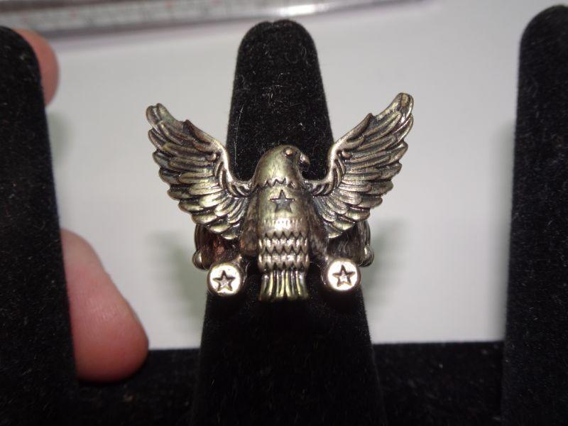 Brass Tone American Eagle Stretch Ring, Patriotic Jewelry
