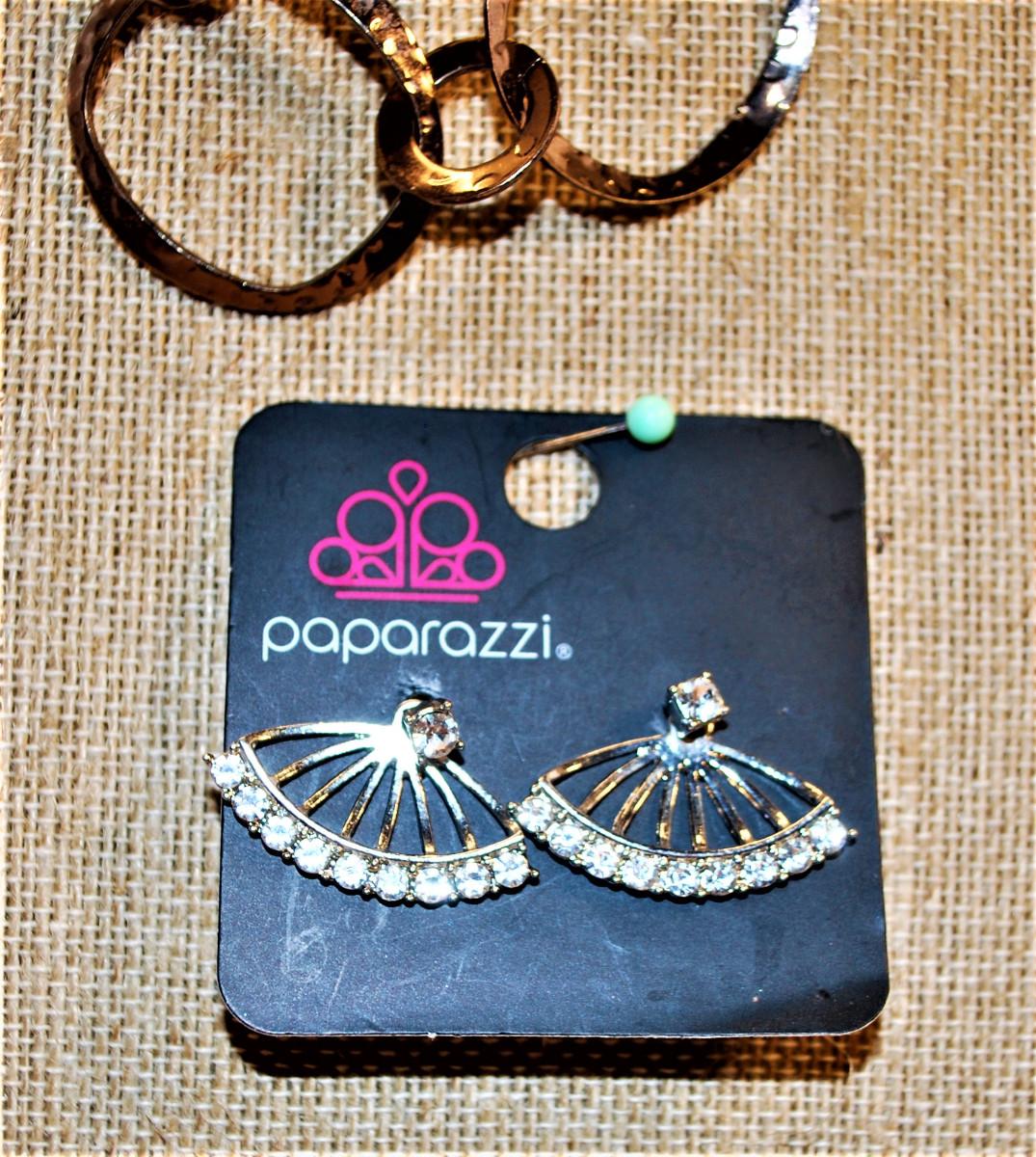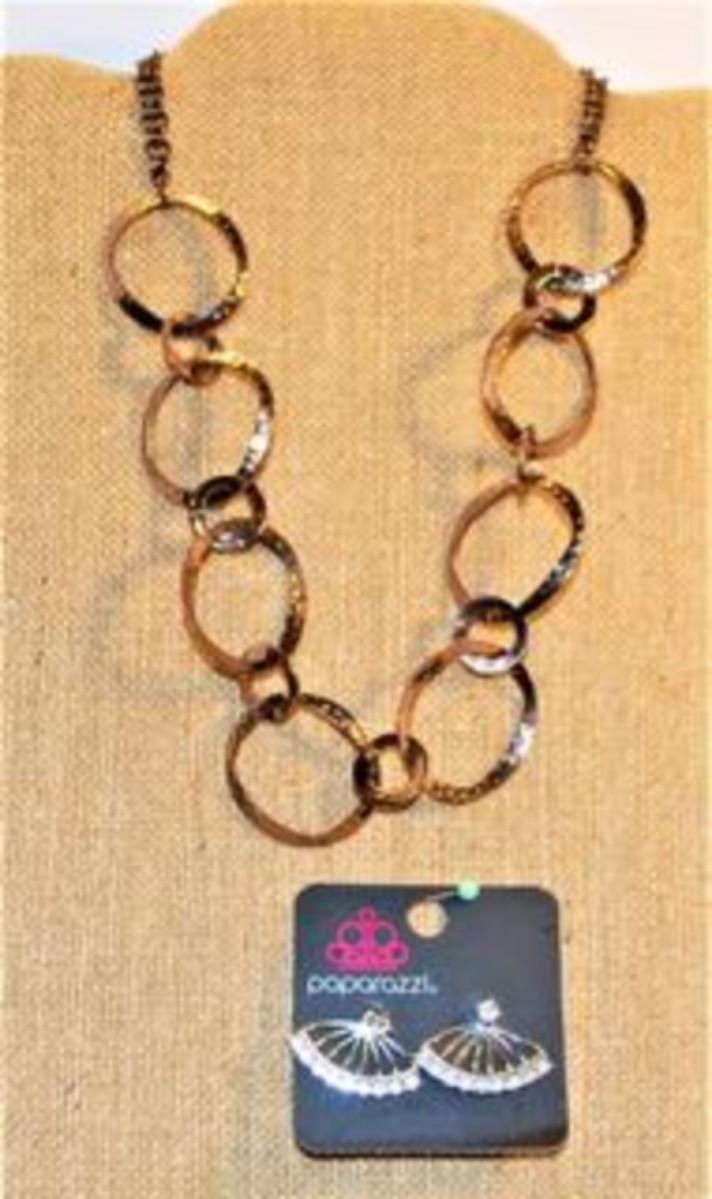 Brass Tone Circles Necklace Size 16" & Pair of Fan Shape Sparkle Earrings