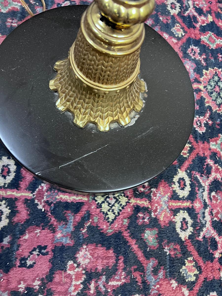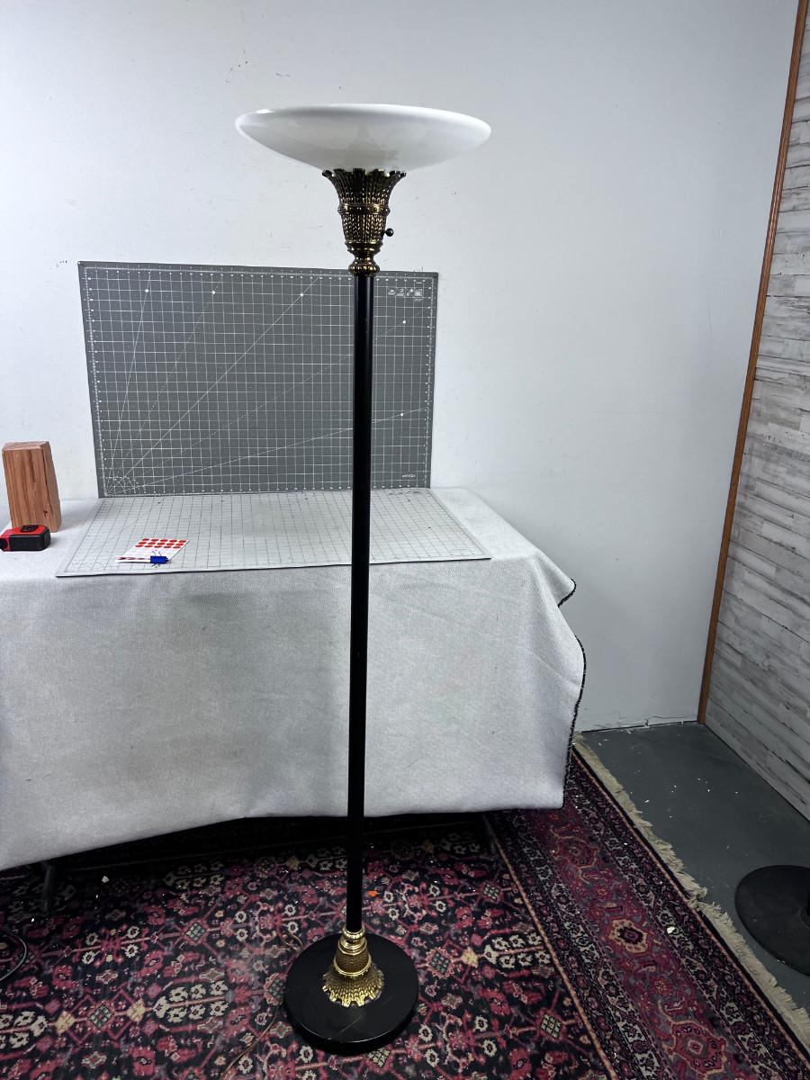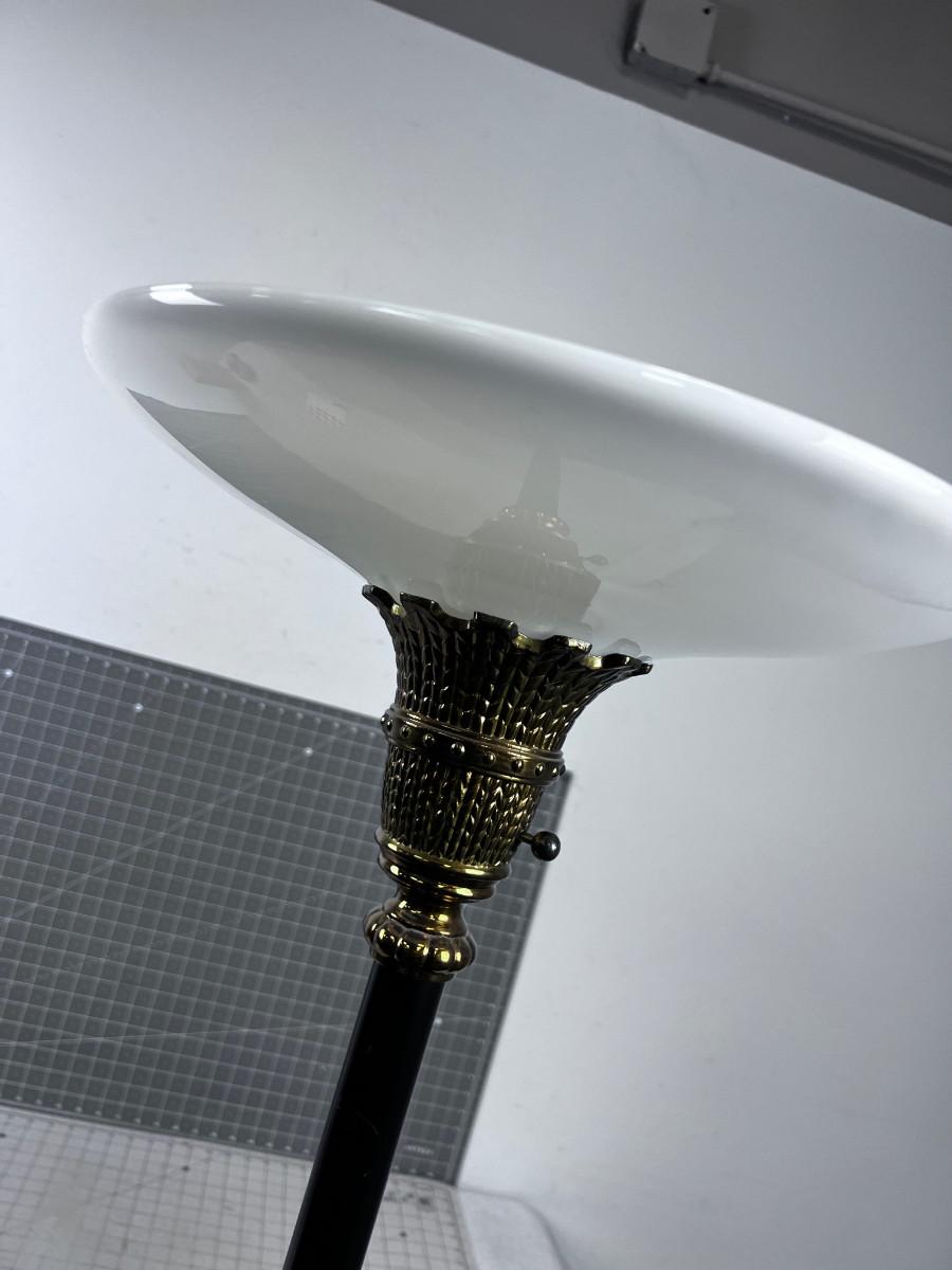 Brass Torchier Lamp, with Milk Shade