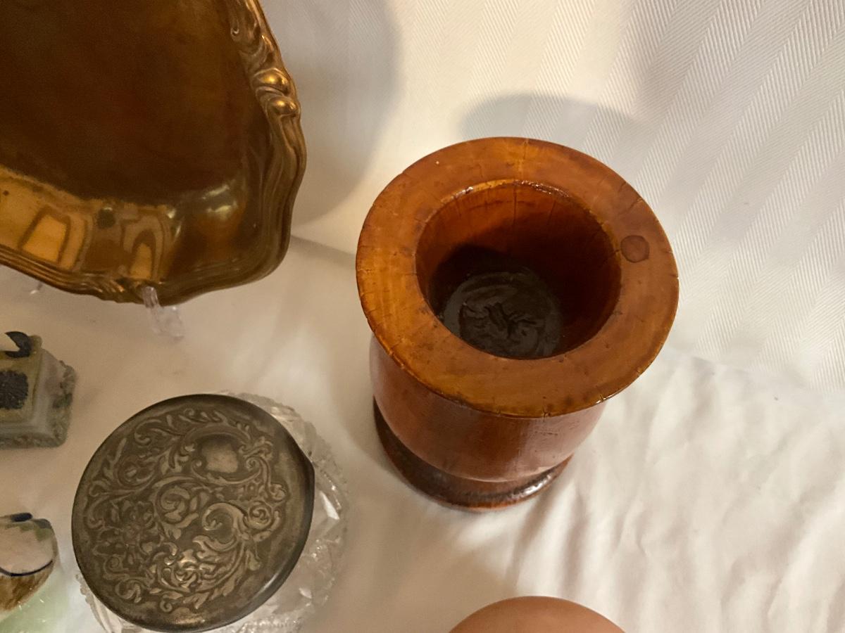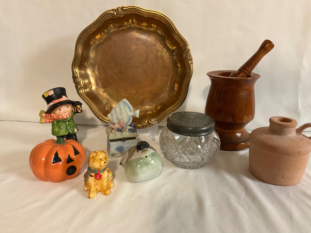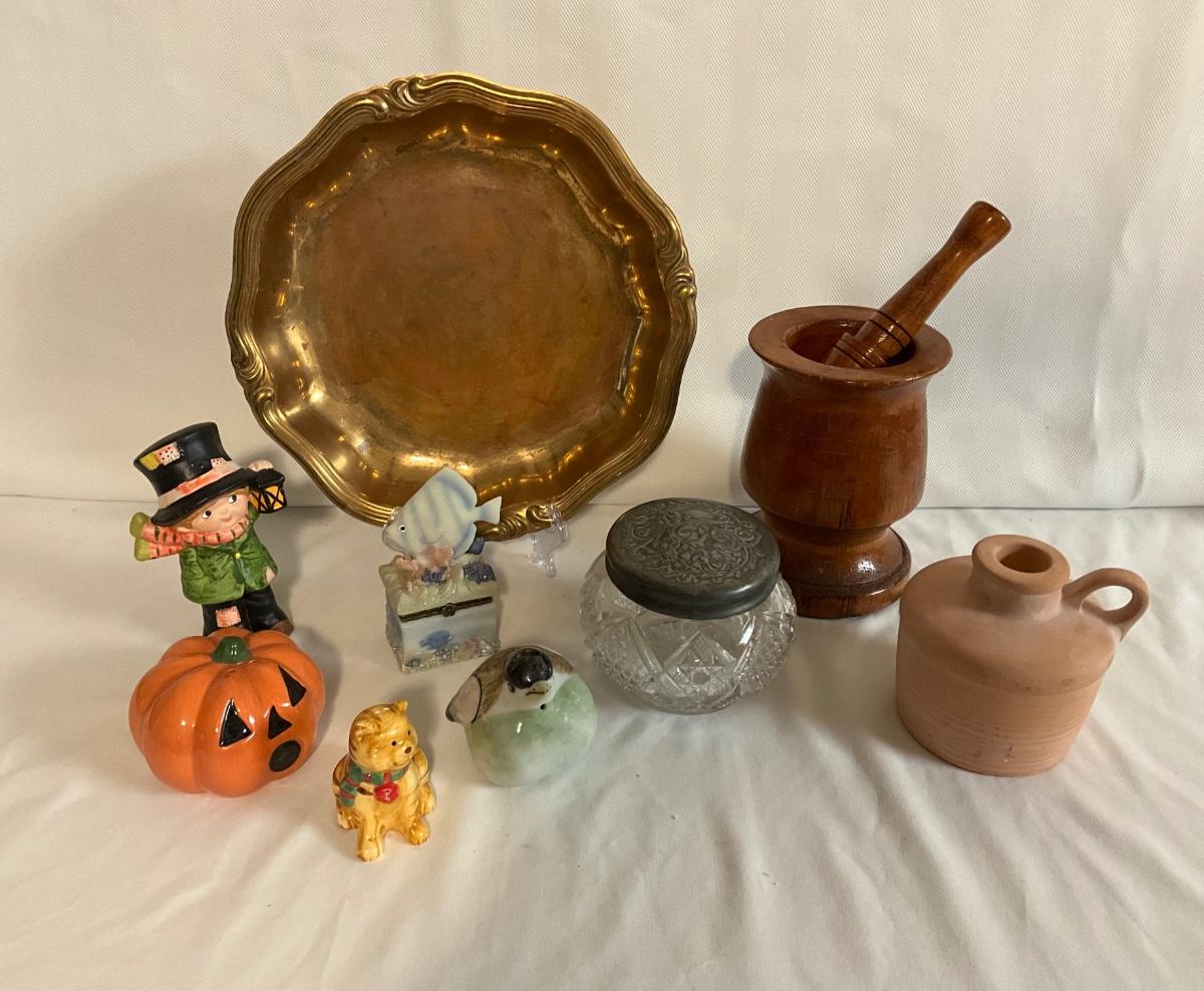 Brass Tray, Mortar and pestle, S/P shakers, Nicknacks