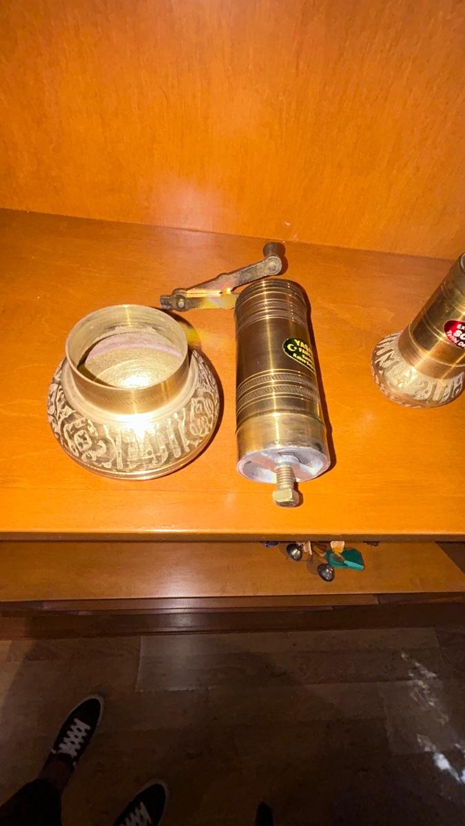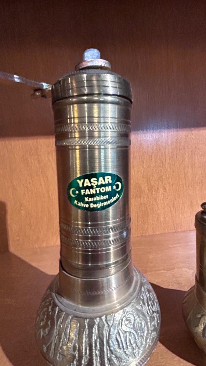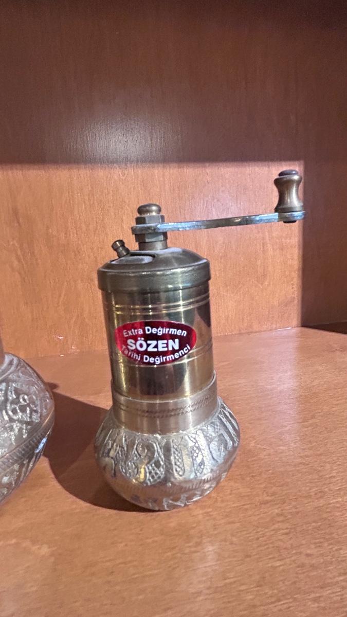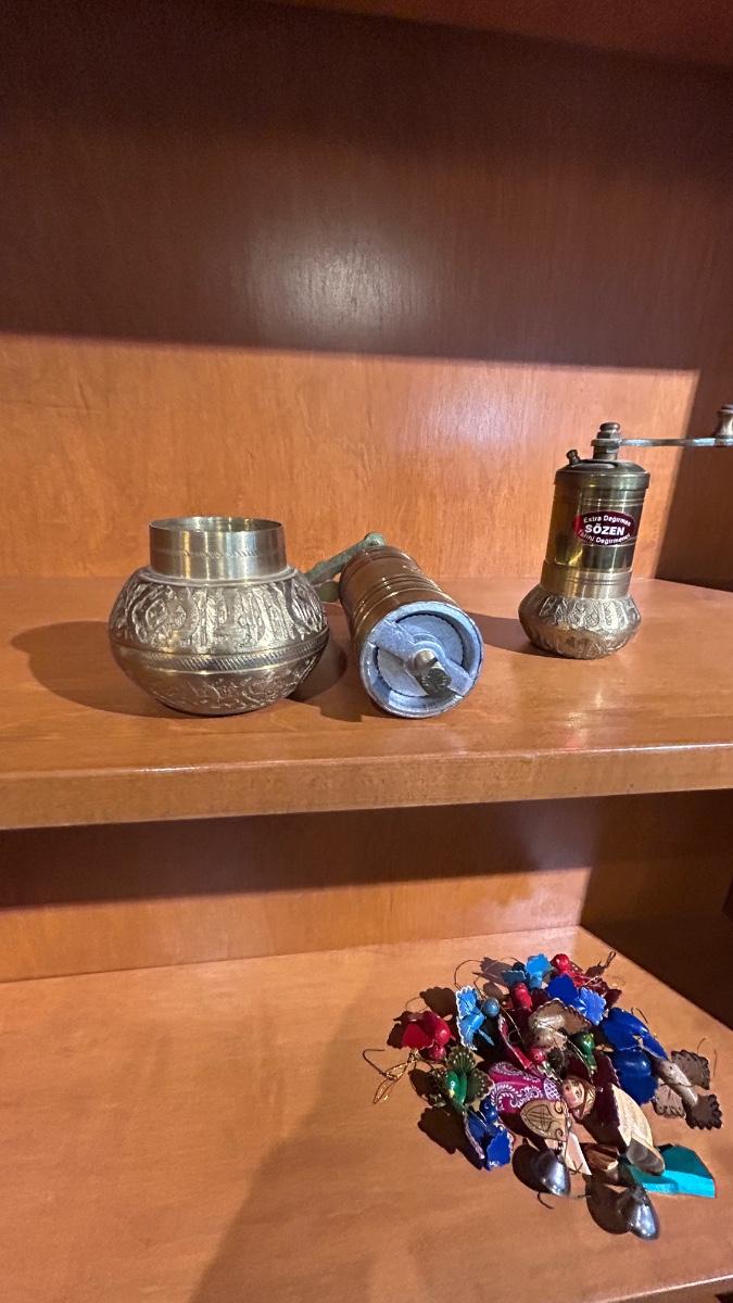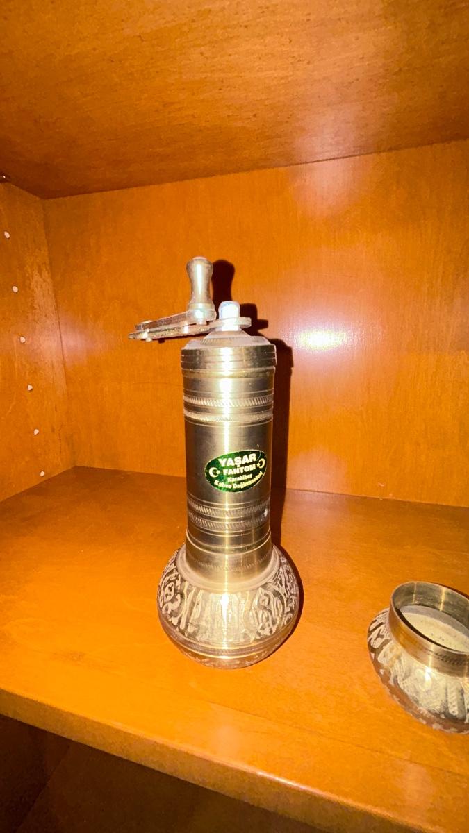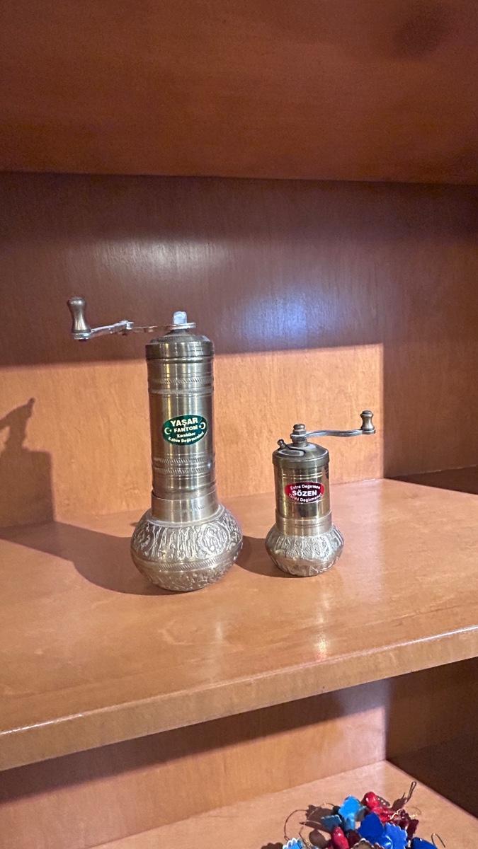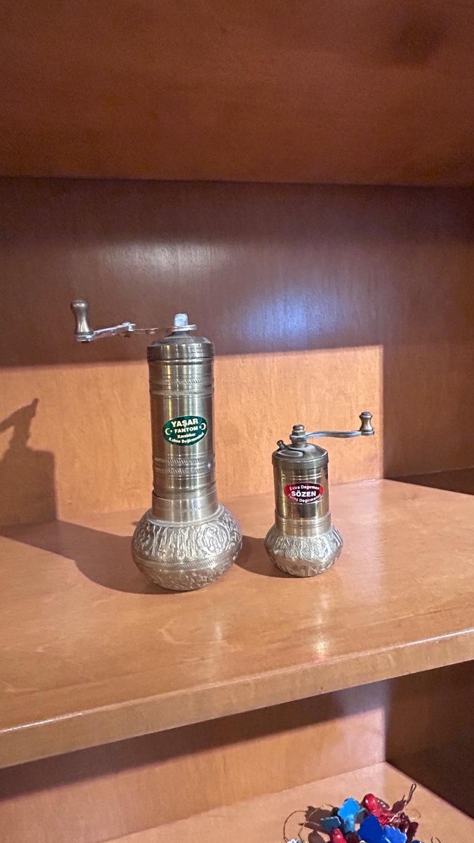 BRASS TURKISH STYLE MANUAL SPICE AND COFFEE GRINDERS WITH COLLECTION CHAMBER