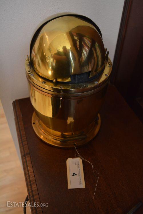 Brass water filled Sestrel Compass inscribed with AFT no.6290S. Mounting hinge on left side needs to be re-attached.