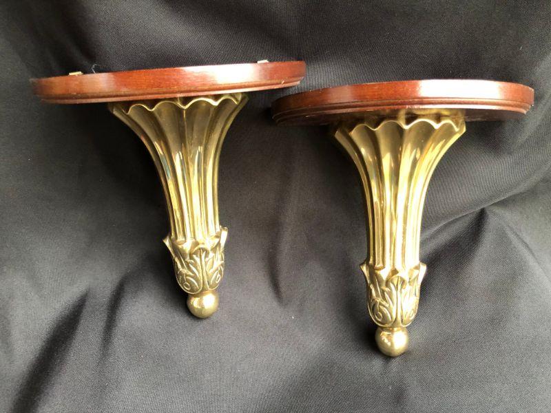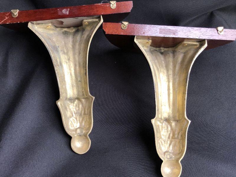 Brass & Wood Decorative Shelves - PAIR